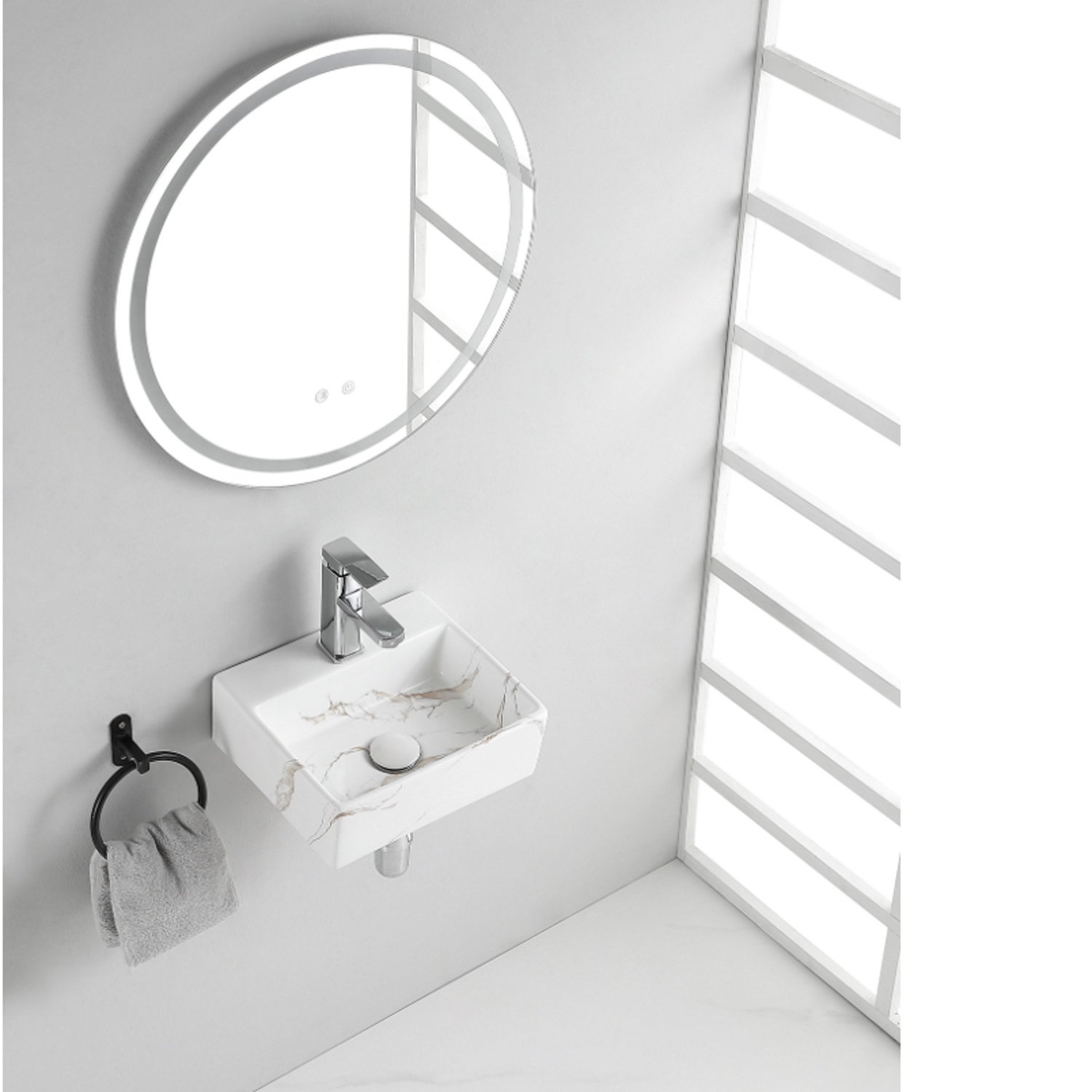 Deze fontein van het merk Wiesbaden is een prachtige aanwinst voor uw toilet. De rechthoekige fontein heeft een prachtige marmerlook en is uiteraard erg ruimtebesparend. Het is vervaardigd uit keramiek en heeft een mooie glans.