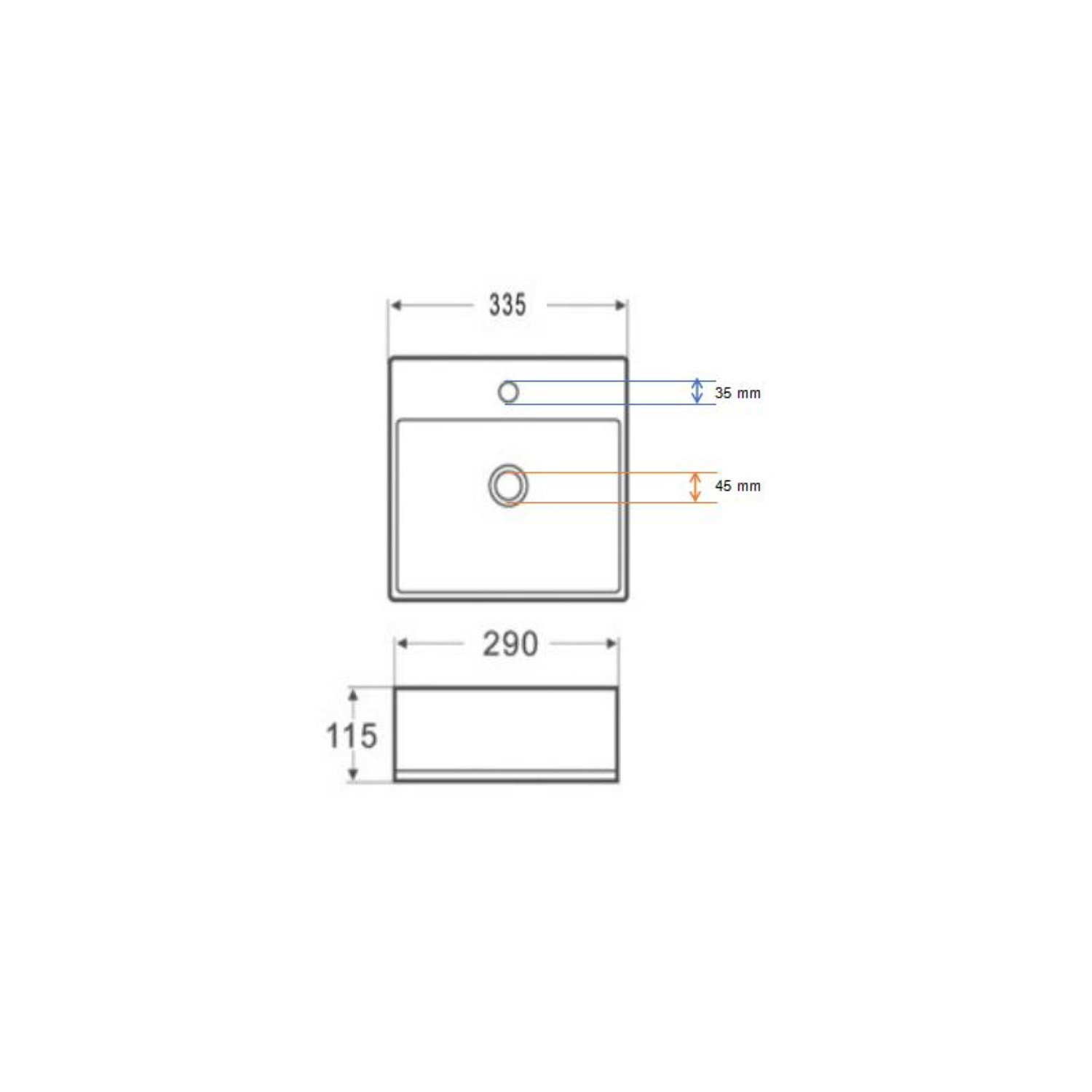 De fontein bevat in het midden een kraangat en een afvoergat. Het wordt verder zonder kraan of afvoer geleverd.