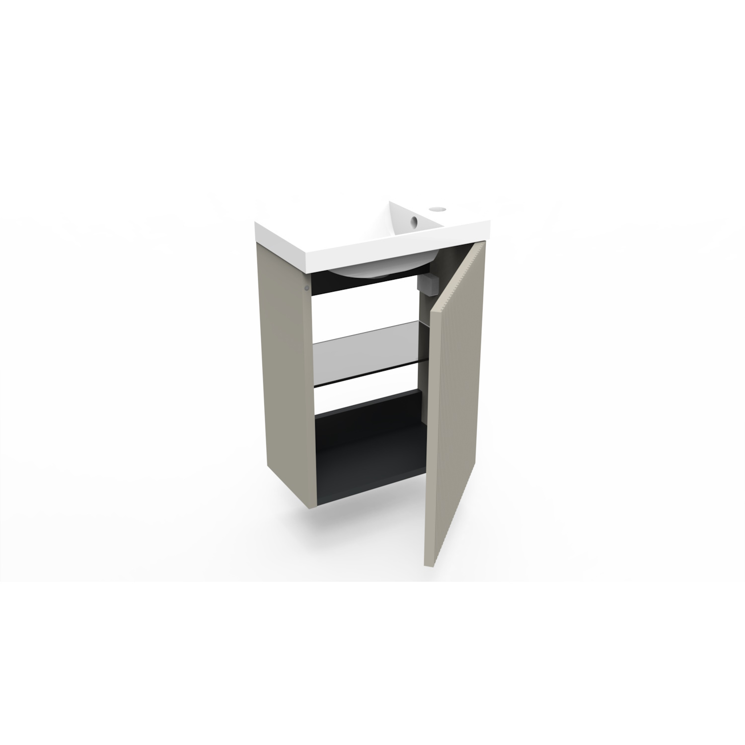 Deze fonteinkast is van het merk Arcqua uit de serie Ridge en is Clay van kleur. De fonteinkast is erg compact, hierdoor past de fonteinkast gemakkelijk in kleinere ruimtes zoals het de toiletruimte. Ook biedt dit kastje veel extra opbergruimte. In het midden zit een extra glazen plankje gemonteerd, zodat u de volledige hoogte van het kastje kunt benutten. De enkele deur is voorzien van een push to open systeem. Bovendien hangt het meubel aan de wand, waardoor je ruimte op de vloer overhoudt! En word inclusief bevestigingsmateriaal geleverd. De onderkast is gemaakt van MDF.