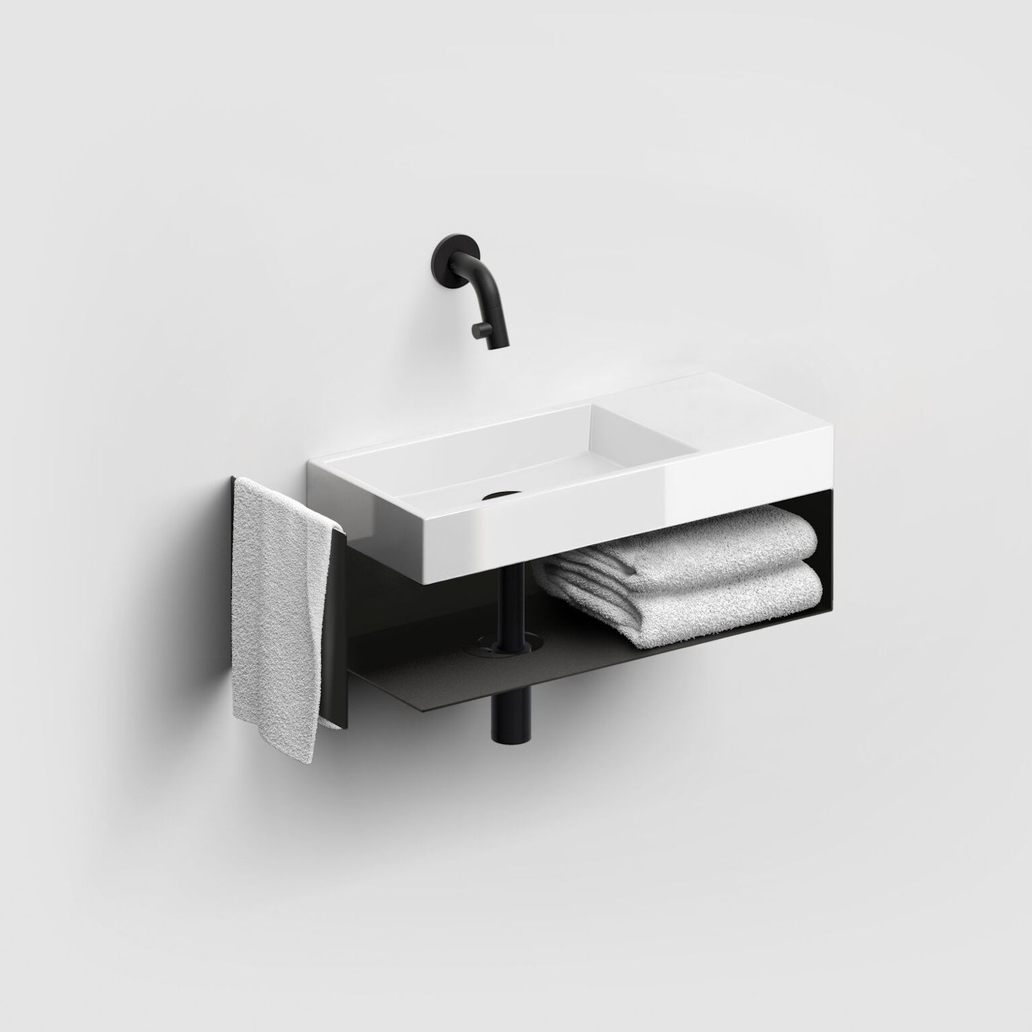 Deze open fonteinkast van het merk Clou is een moderne toevoeging aan de badkamer. De kast is ontworpen met aan de zijkant een handdoekhouder en daarnaast nog extra opbergruimte. De moderne zwarte kast is een uitstekende toevoeging aan de Mini Wash Me 45 cm rechts / Vale 45 cm rechts . Door het open model heb je snel en gemakkelijk toegang tot je dagelijkse benodigdheden. De fontein bevind zich aan de rechterkant en de afmetingen van de fonteinkast is 17.5x53x19 cm.