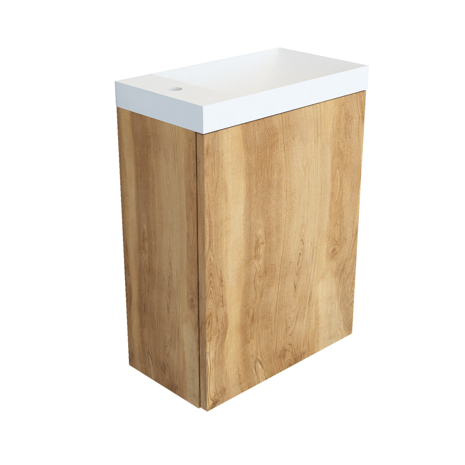 Deze fonteinkast is van het merk Arcqua uit de serie Luna en is Natural Oak van kleur. De fonteinkast is erg compact, hierdoor past de fonteinkast gemakkelijk in kleinere ruimtes zoals het de toiletruimte. Ook biedt dit kastje veel extra opbergruimte. In het midden zit een extra glazen plankje gemonteerd, zodat u de volledige hoogte van het kastje kunt benutten. De enkele deur is voorzien van een push to open systeem. Bovendien hangt het meubel aan de wand, waardoor je ruimte op de vloer overhoudt! En word inclusief bevestigingsmateriaal geleverd. De onderkast is gemaakt van MDF.