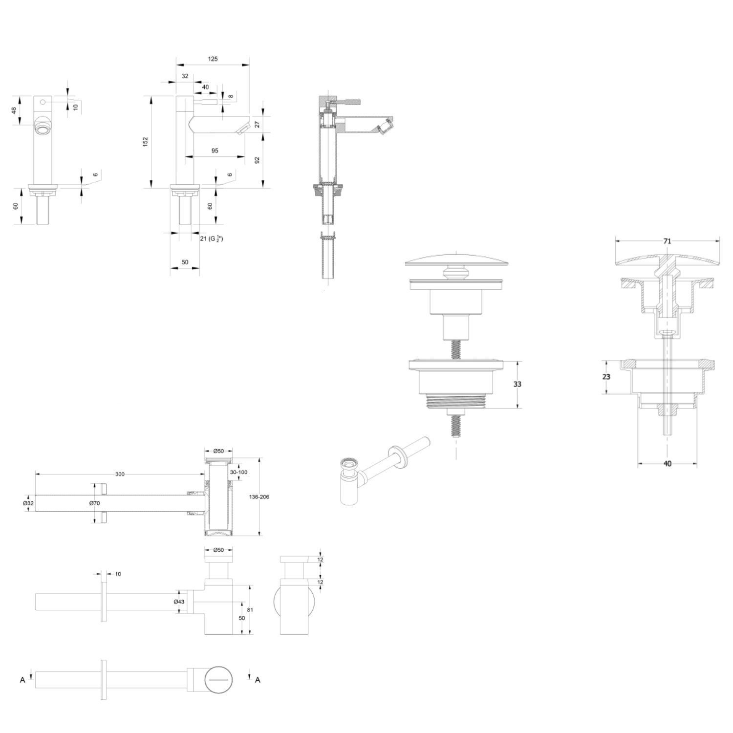 De fonteinkraan uit de set is gemaakt van messing, heeft een hoogte van 15.2 cm en een diepte van 12.5 cm. De uitloop heeft een hoogte van 9.2 cm en een diepte van 9.5 cm. De koudwaterkraan is eenvoudig te bedienen met de enkele hendel aan de bovenzijde waarmee u de waterstroom kan regelen. Naast een kraan komt de set ook met een waste en designsifon in dezelfde kleur.