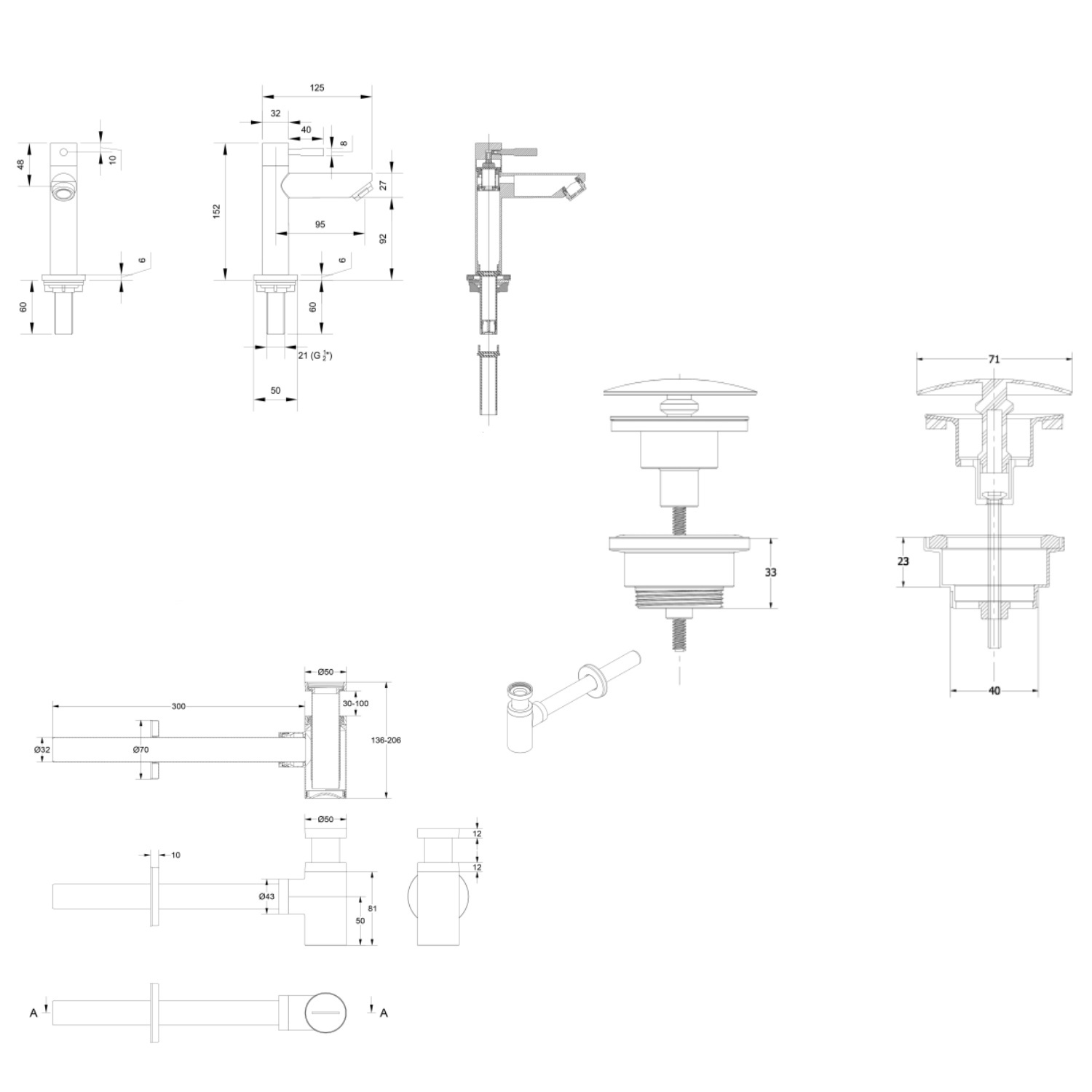 De fonteinkraan uit de set is gemaakt van messing, heeft een hoogte van 15.2 cm en een diepte van 12.5 cm. De uitloop heeft een hoogte van 9.2 cm en een diepte van 9.5 cm. De koudwaterkraan is eenvoudig te bedienen met de enkele hendel aan de bovenzijde waarmee u de waterstroom kan regelen. Naast een kraan komt de set ook met een waste en designsifon in dezelfde kleur.