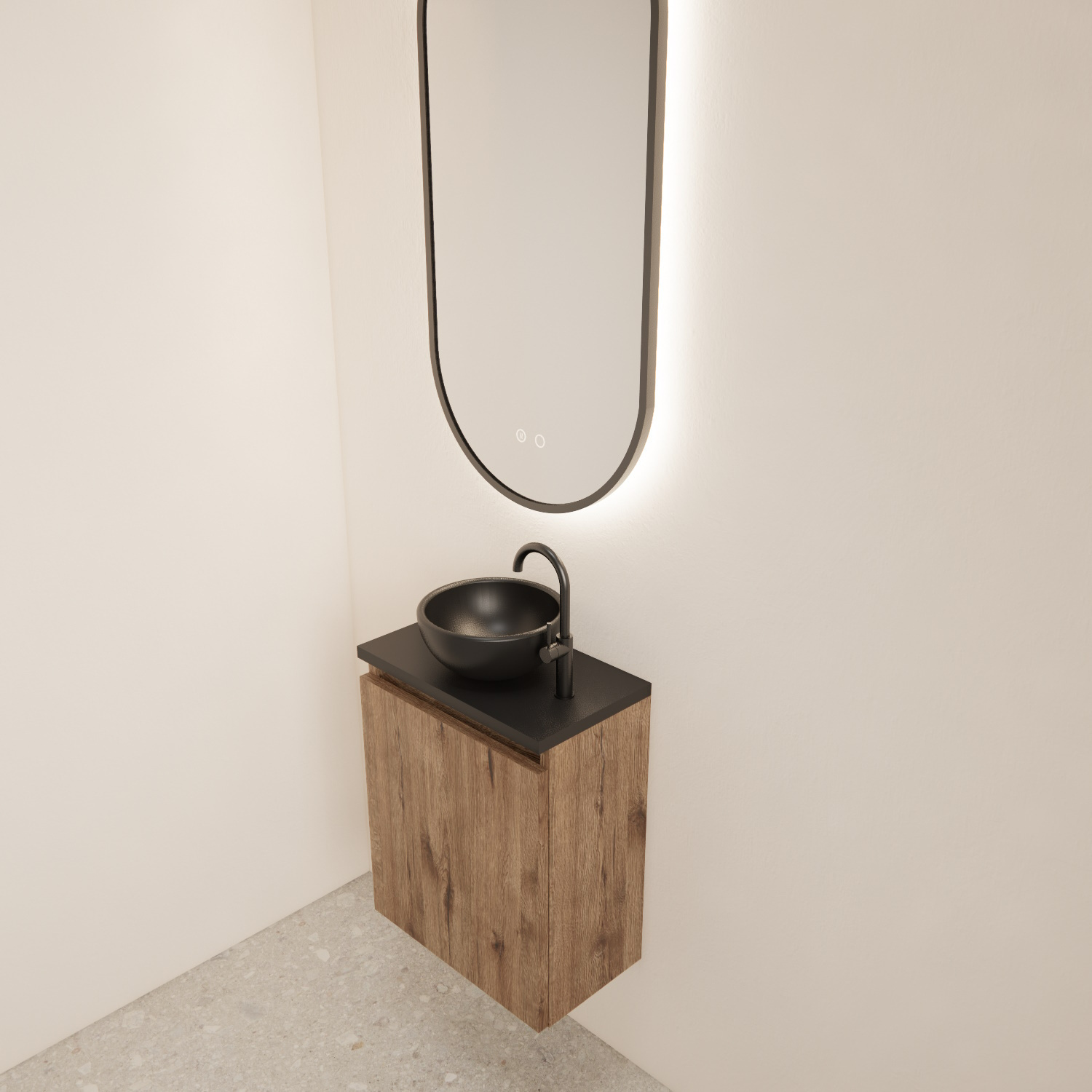 Dit fonteinmeubel is van het merk BWS en komt uit de serie Meadow. De serie meadow bestaat uit fonteinkasten met topplaten die u kunt combineren met een mini waskom. De fonteinkasten zijn gemaakt van Melamine met een kleurafwerking. Deze fonteinkast heeft een Wellington Oak afwerking met een Mat Zwarte topplaat en is door deze kleuren te combineren met veel verschillende stijlen en kleuren tegels.