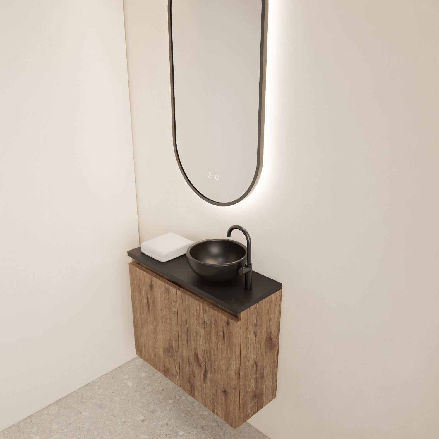 Dit fonteinmeubel is van het merk BWS en komt uit de serie Meadow. De serie meadow bestaat uit fonteinkasten met topplaten die u kunt combineren met een mini waskom. De fonteinkasten zijn gemaakt van Melamine met een kleurafwerking. Deze fonteinkast heeft een Wellington Oak afwerking met een Mat Zwarte topplaat en is door deze kleuren te combineren met veel verschillende stijlen en kleuren tegels.
