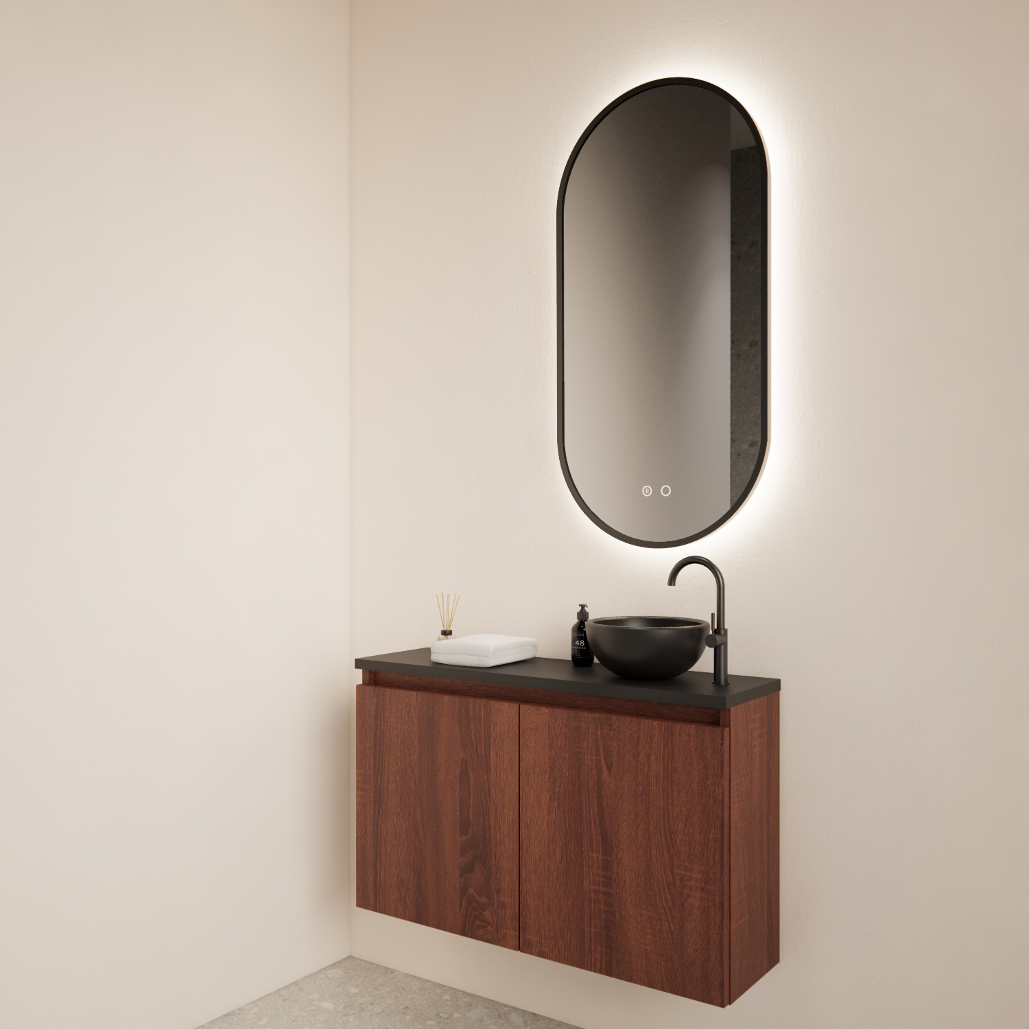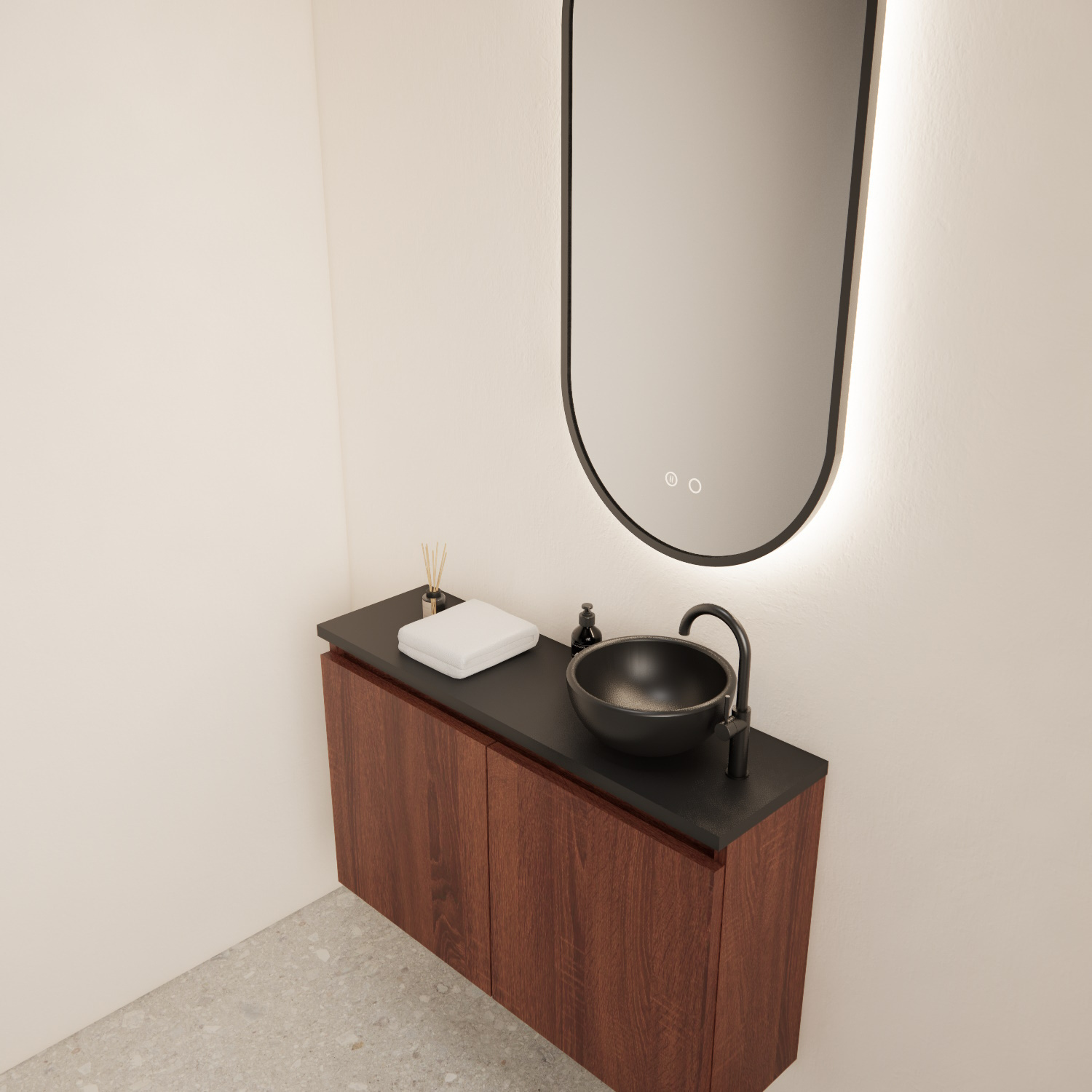 Dit fonteinmeubel is van het merk BWS en komt uit de serie Meadow. De serie meadow bestaat uit fonteinkasten met topplaten die u kunt combineren met een mini waskom. De fonteinkasten zijn gemaakt van Melamine met een kleurafwerking. Deze fonteinkast heeft een Choco Eiken afwerking met een Mat Zwarte topplaat en is door deze kleuren te combineren met veel verschillende stijlen en kleuren tegels.