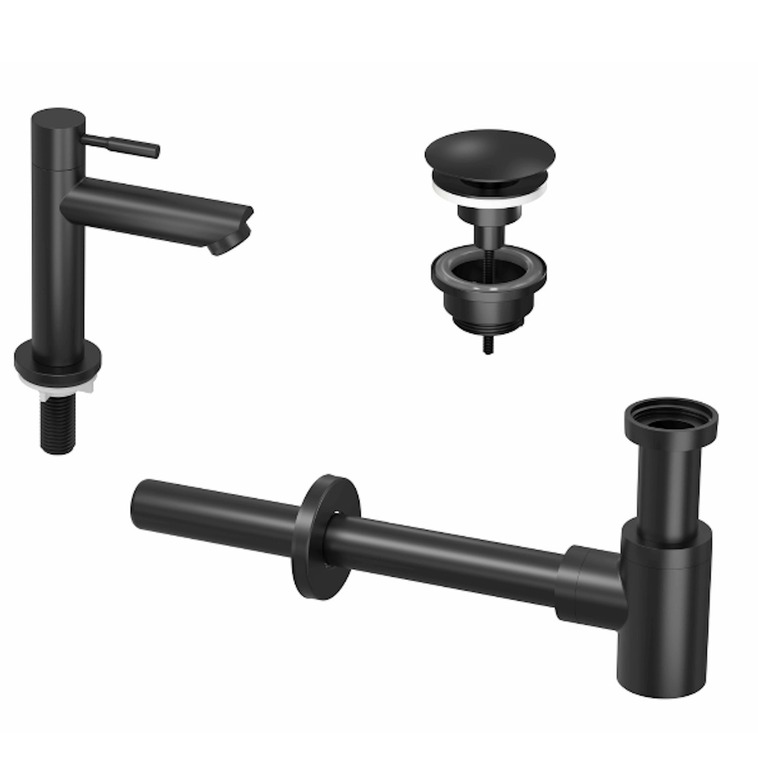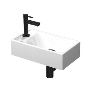Deze fonteinset van Basic-Line is een complete, stijlvolle set voor in de toiletruimte of badkamer. De fonteinset bestaat uit een glans witte porseleinen rechthoekige fontein met een met kraangat aan de linkerkant, een mat zwarte fonteinkraan, sifon, afvoerplug en bevestigingsmateriaal.