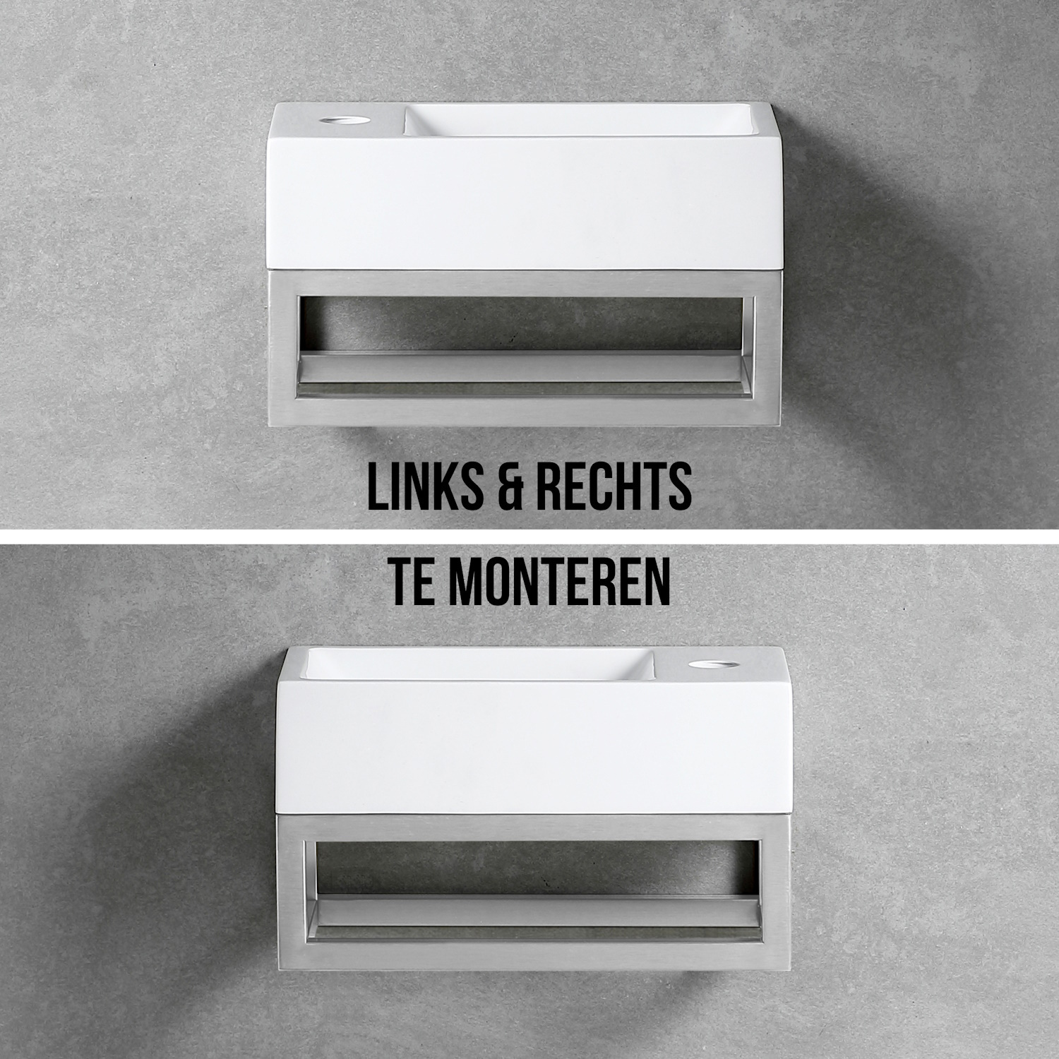 De Fonteinset Best Design R-Line L&R is de ideale keuze voor wie stijl en functionaliteit wil combineren in een compacte ruimte. Deze fontein van glanzend wit kunststof is zowel linksom als rechtsom te plaatsen, waardoor hij perfect past in elke badkamer of toilet. Met een breedte van 36 cm, een diepte van 18 cm en een hoogte van 20 cm inclusief frame, is deze set ontworpen om gemakkelijk te installeren, zelfs in de kleinste ruimtes. Het rvs-kleurige frame voegt een moderne touch toe en zorgt voor een strakke afwerking.