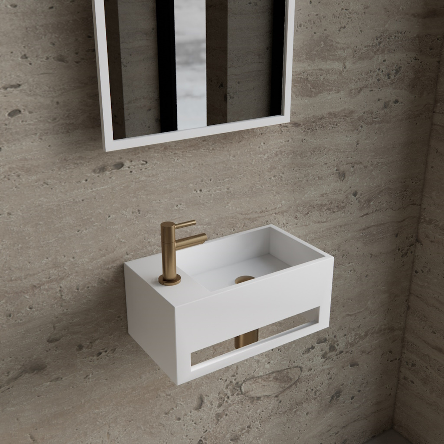 Dit fontein is gemaakt van Solid Surface, een composiet geproduceerd uit mineralen en harsen. Dit materiaal is zeer bestendig tegen vocht, vlekken, en zelfs chemische stoffen. Er trekt dus niets in, is niet poreus en heeft een intense kleur en is gemakkelijk schoon te houden. Omdat het door en door van hetzelfde materiaal bestaat, kunnen eventuele beschadigingen weg gepolijst worden. Ideaal dus in de badkamer of het toilet!