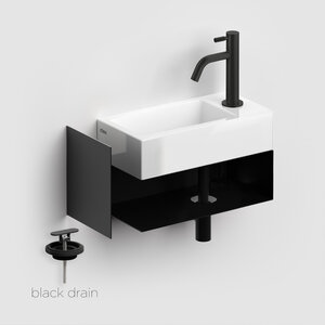 Bent u op zoek naar een mooie fonteinset voor in uw toilet? Dan is deze set van Clou uit de serie Flush 3 echt iets voor u. Deze onderkast van de fontein heeft de kleur mat zwart. De fontein is glanzend wit. Er zitten een kraan, sifon en afvoerplug bij in de kleur mat zwart. De kraan zit aan de rechterkant van de fontein en er zit geen overloop in. De afmetingen zijn: 20.5 cm hoog, 44 cm breed en 18 cm diep. Door zijn strakke vormgeving en kleur past deze fonteinset in elk toilet of badkamer. Van zowel modern als klassiek.