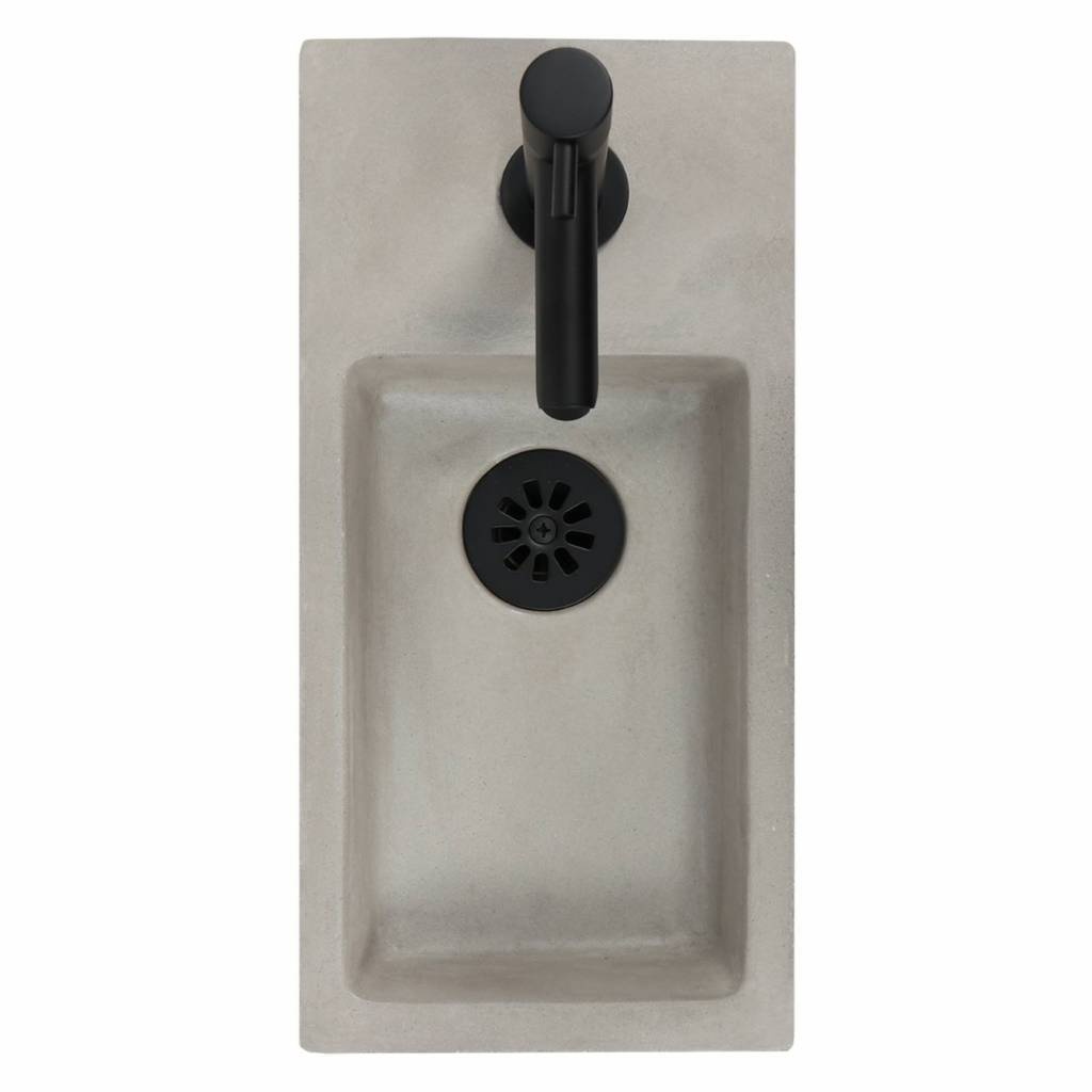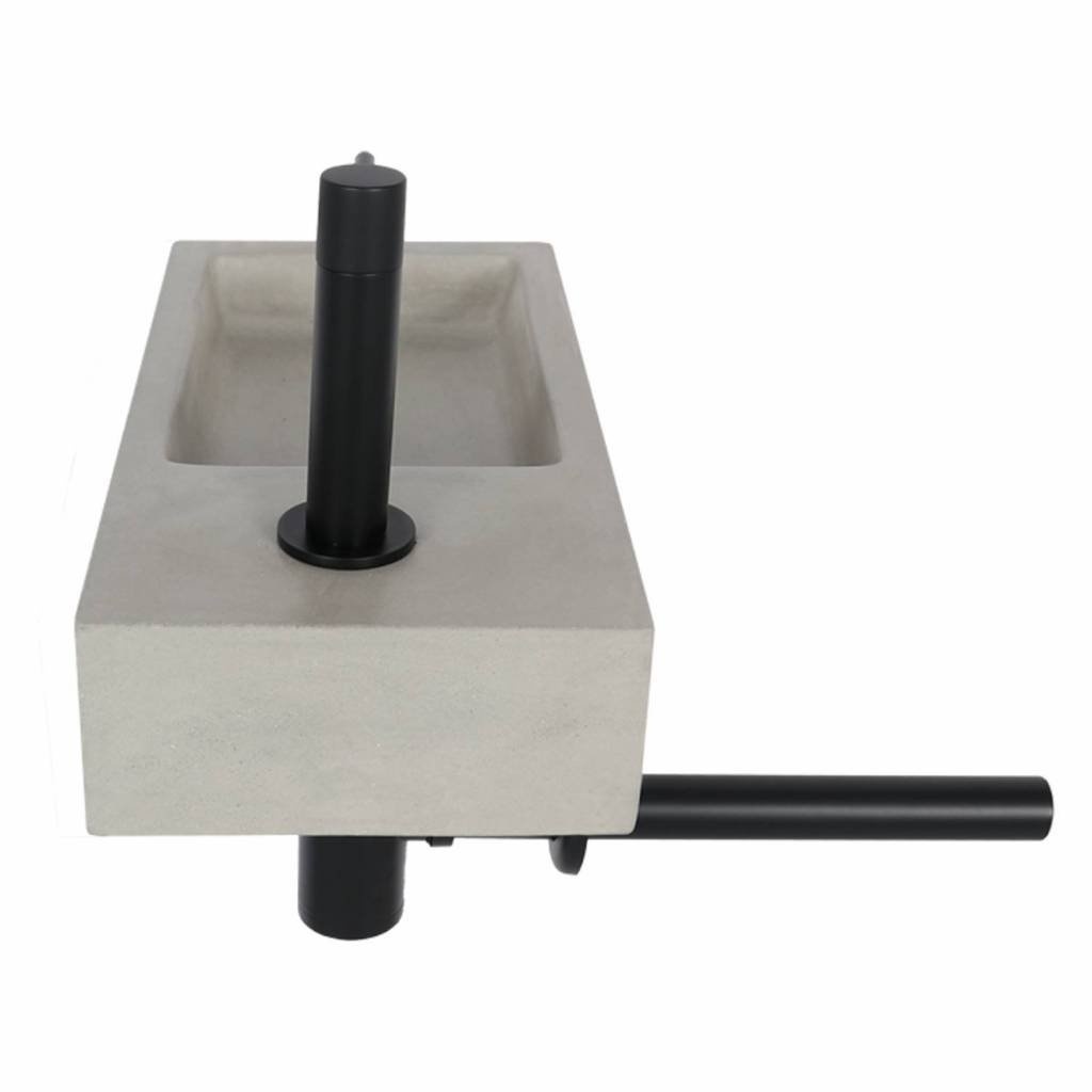 Met de fonteinset Jukon heeft u meteen alle benodigdheden in één pakket. Naast de betonnen wastafel krijgt u namelijk ook een stijlvolle matzwarte toiletkraan, een matzwarte plug en een bijbehorende zwarte sifon. Combineer de fonteinset bijvoorbeeld met een houten plank om de look helemaal af te maken en uw spullen makkelijk weg te kunnen zetten.