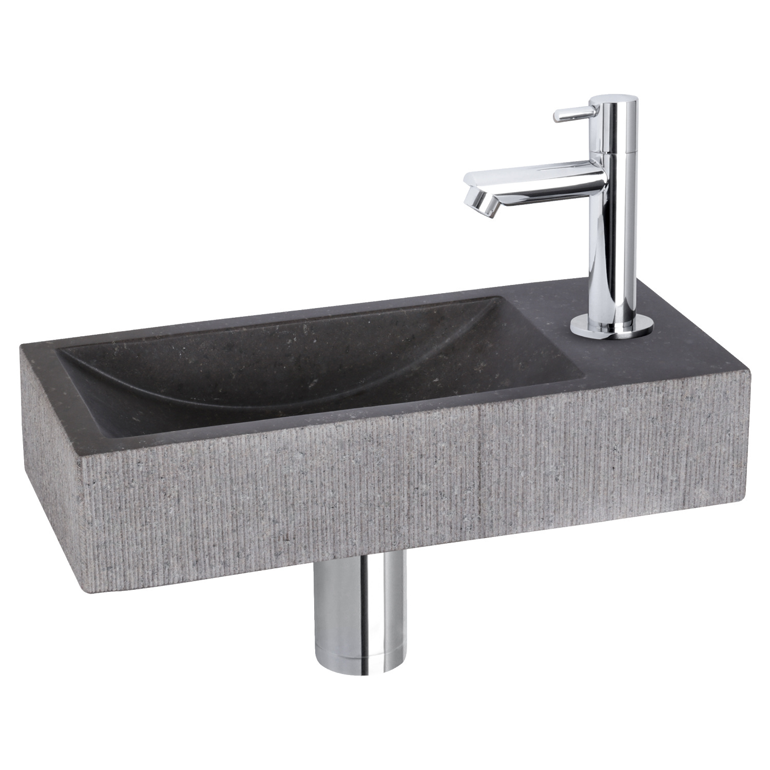 Deze set bestaat uit het strak vormgegeven fontein Ribble van hoogwaardig natuursteen met chromen rechte koudwaterkraan, afvoerplug en sifon. Het kraangat zit aan de rechterkant van dit subtiele fontein. Het van hoogwaardig natuursteen is een natuurlijk materiaal wat een zeer luxe uitstraling aan uw toiletruimte geeft.