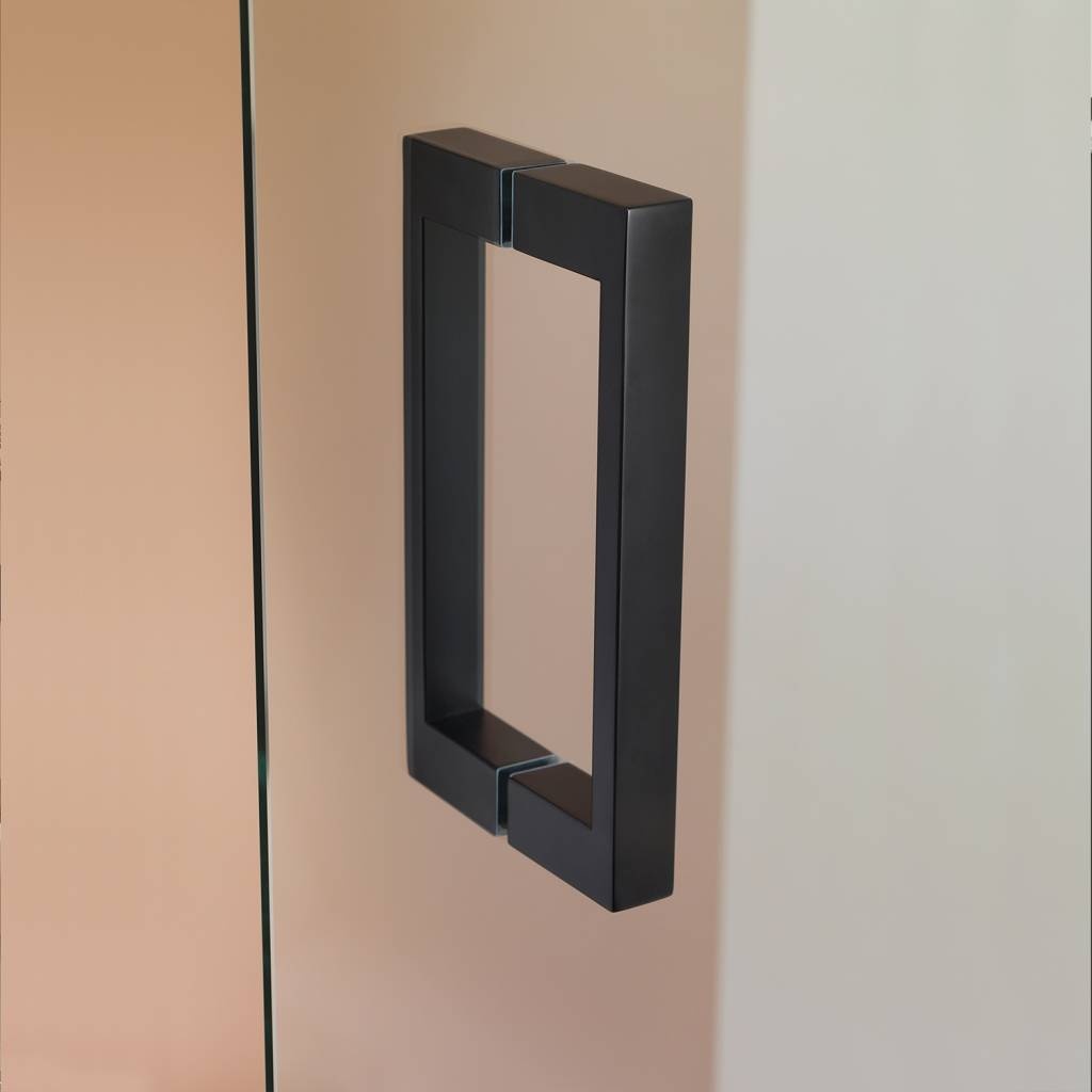 De draaideur, voor combinatie met een tweede draaideur, wordt geleverd inclusief scharnieren en deurgreep. Wat deze deur écht bijzonder maakt, is de matzwarte afwerking. Zo breng je een unieke sfeer in je badkamer. Wanneer beide deuren zijn geplaatst, ontstaat een zeer ruime hoekinstap douchecabine van 88x88x200 cm.