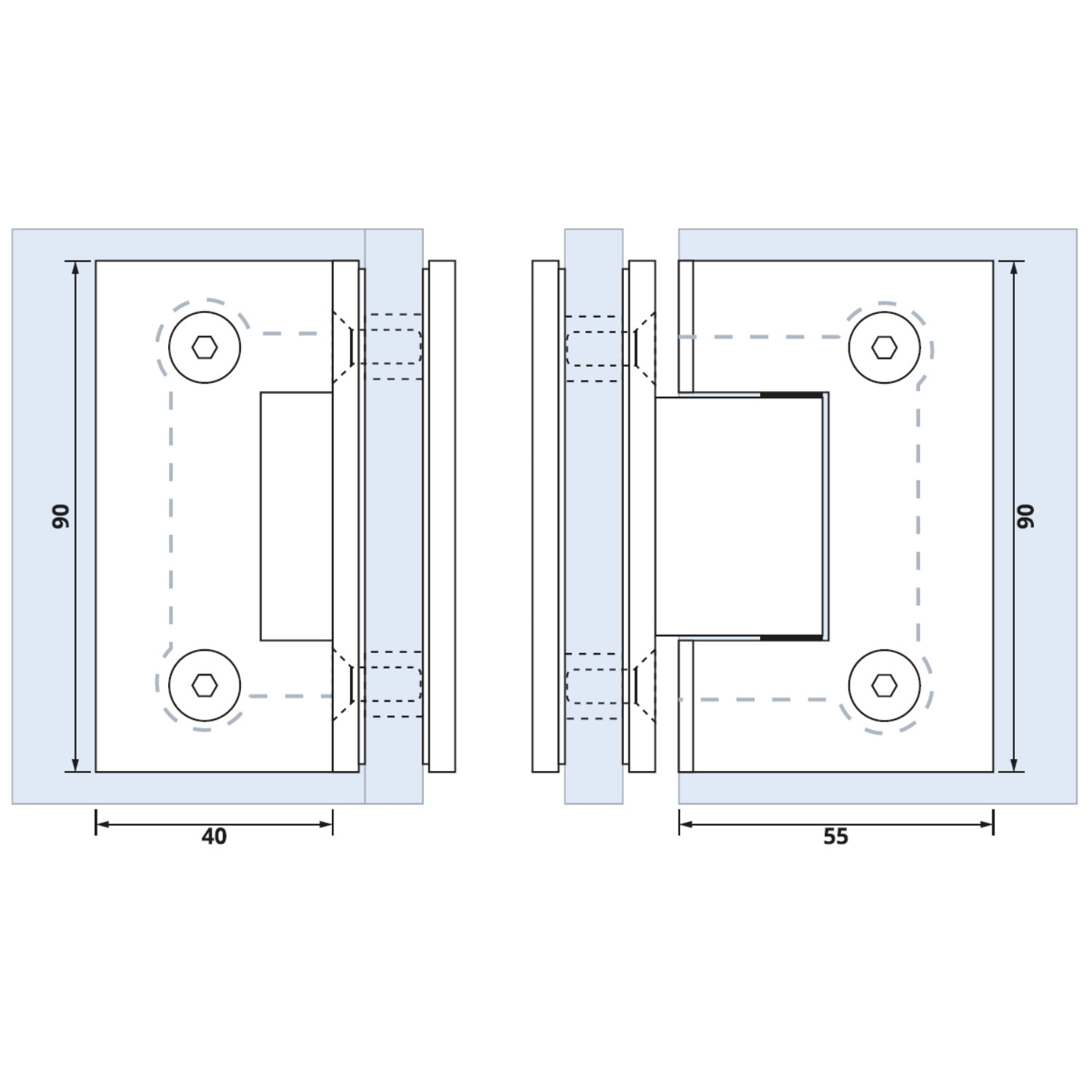 Deze chromen glasscharnier wordt per twee stuks geleverd. Met deze glasscharnier kunt u een D1, D2 of DZ1 aan sluiten op een W2.