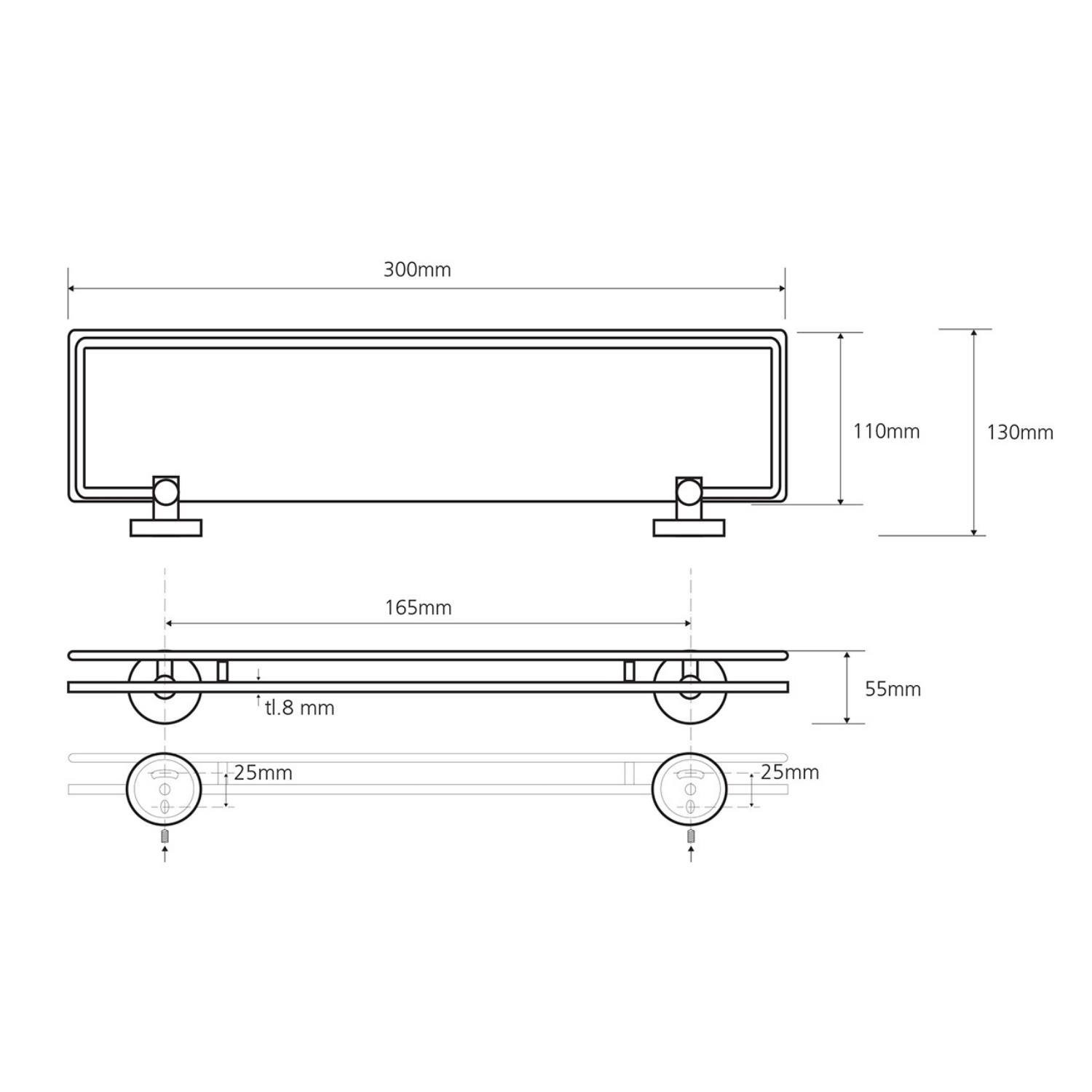 Glazen Planchet Sapho X-Round 30x5.5 cm met Rails Chroom