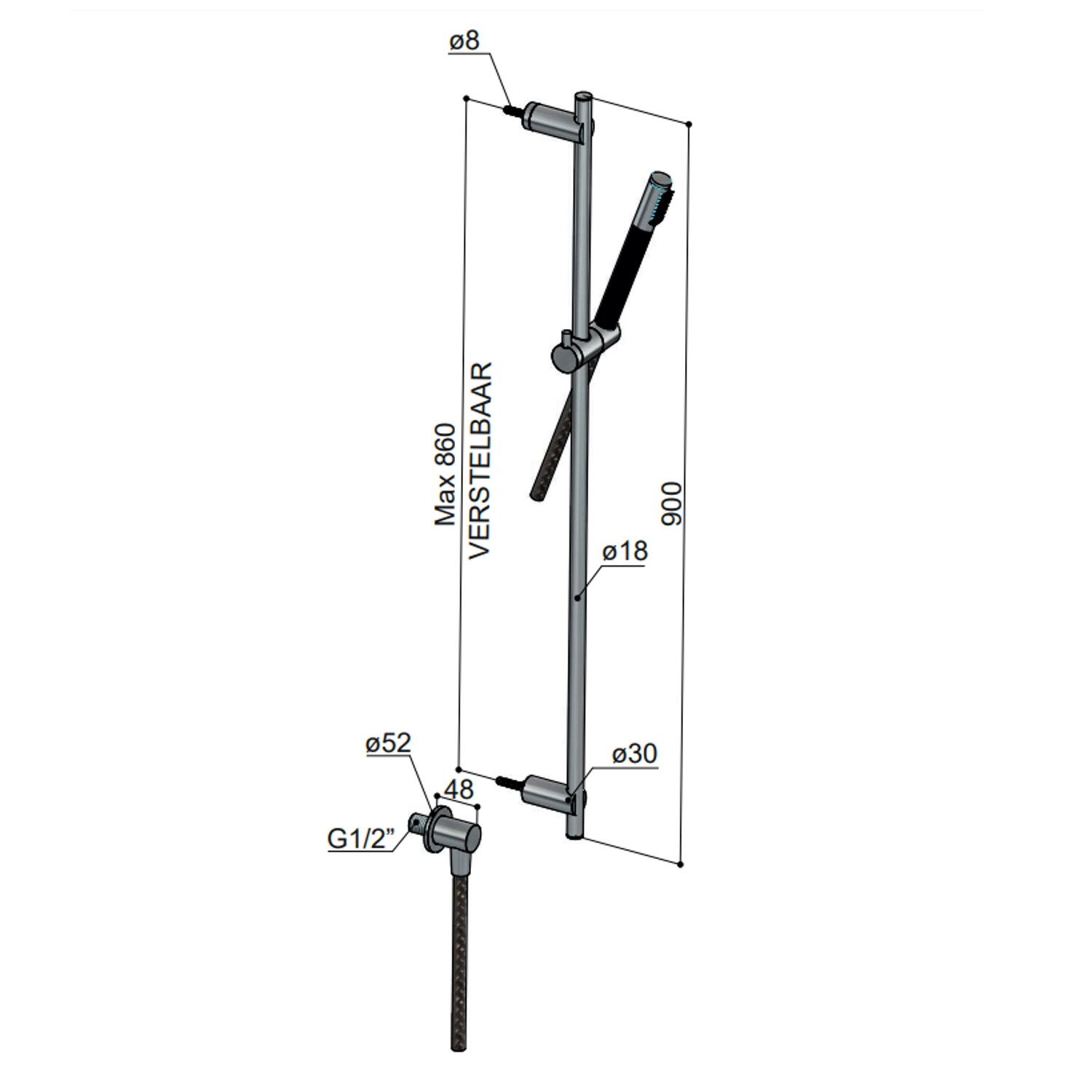 Deze set bestaat uit een glijstang, een handdouche met doucheslang van 150 cm en een wanduitlaat. Het is gemaakt van RVS316. Dat is roestvrij staal dat bestand is tegen vocht, hoge temperaturen en vuil. Het is heel hygiënisch en ook nog eens makkelijk schoon te maken. Omdat het gemaakt is in de kleur RVS316, is het een echte blikvanger voor een ruimte. Dankzij de PVD coating, is de uitloop ook nog eens duurzaam. Het is daarnaast krasbestendig, slijtvast en verkleurt niet. Een product waar u dus lang plezier van heeft.
