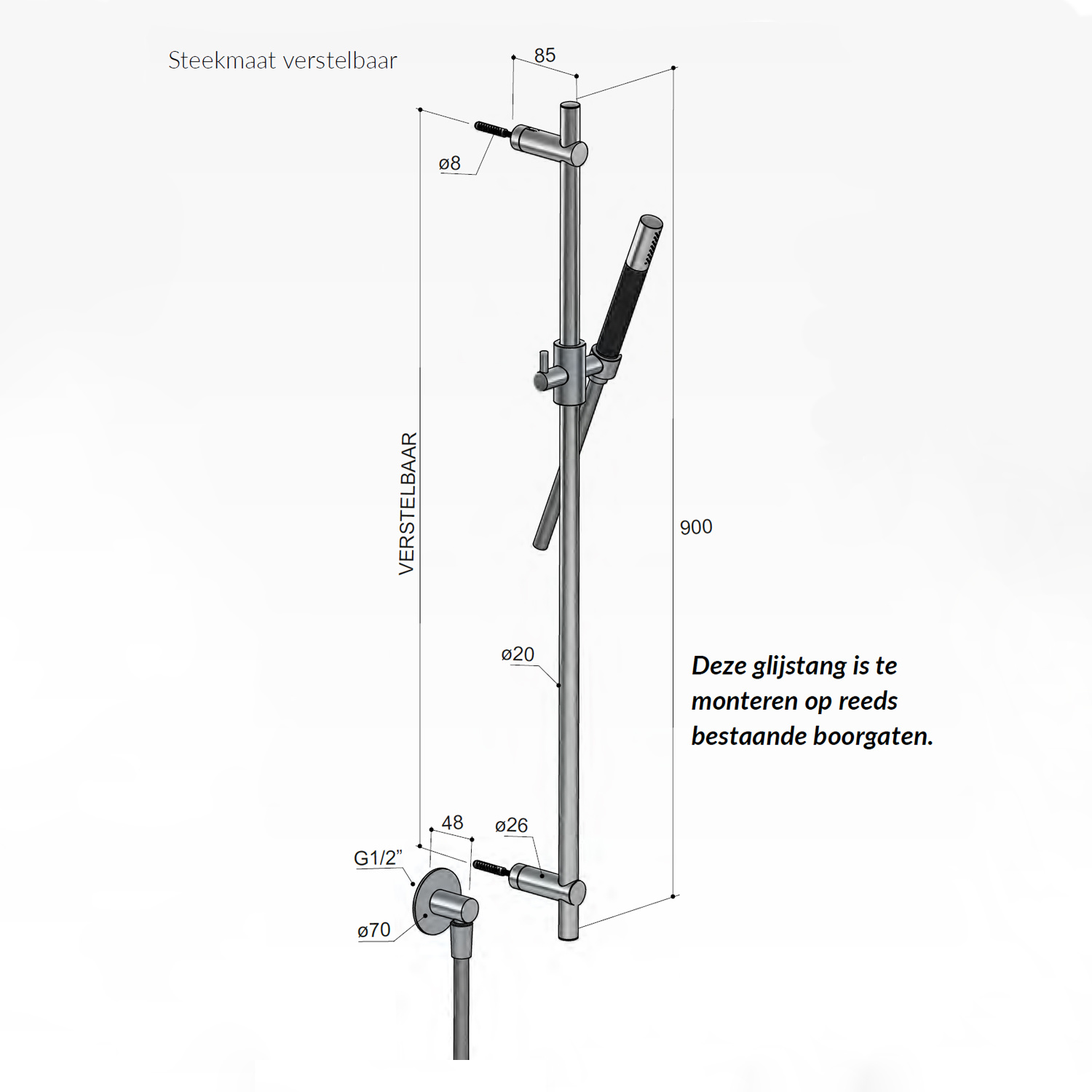 Deze design glijstangset is hoogst waarschijnlijk precies de afwerking die u zoekt in uw badkamer. Net zoals de rest van de Hotbath Cobber serie is ook deze glijstang de eyecatcher van uw badkamer. De set heeft een 1/2" set aansluiting. De stang zelf heeft een lengte van 90 cm en de aansluitpunten zijn verstelbaar over de lengte van de stang. De set bevat een wandaansluitbocht, doucheslang en staafhanddouche met 1 douchestand.