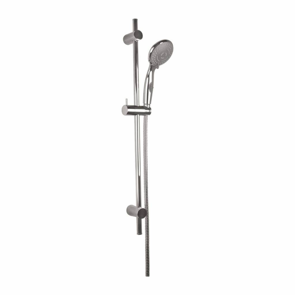 Een mooie complete glijstangset van VM Dana. De glijstang is 71cm lang. De set is voorzien van verstelbare handdouchehouder zodat u zelf de hoogte kunt instellen. De handdouche heeft 3 standen. Hierdoor is er voor iedereen een gewenste straal mogelijk. De handdouche geeft een massage straal, standaard mist straal en een combinatie van de twee.