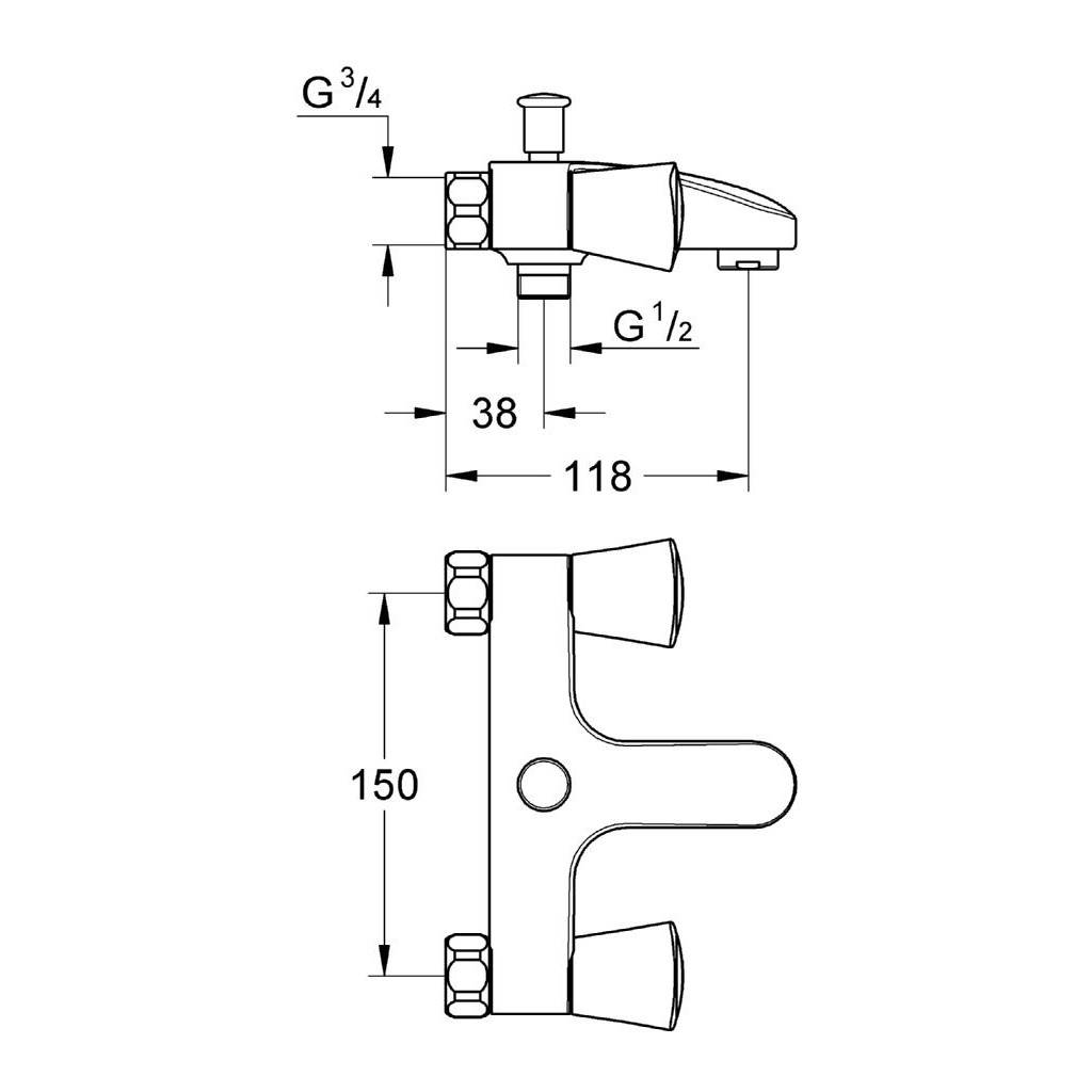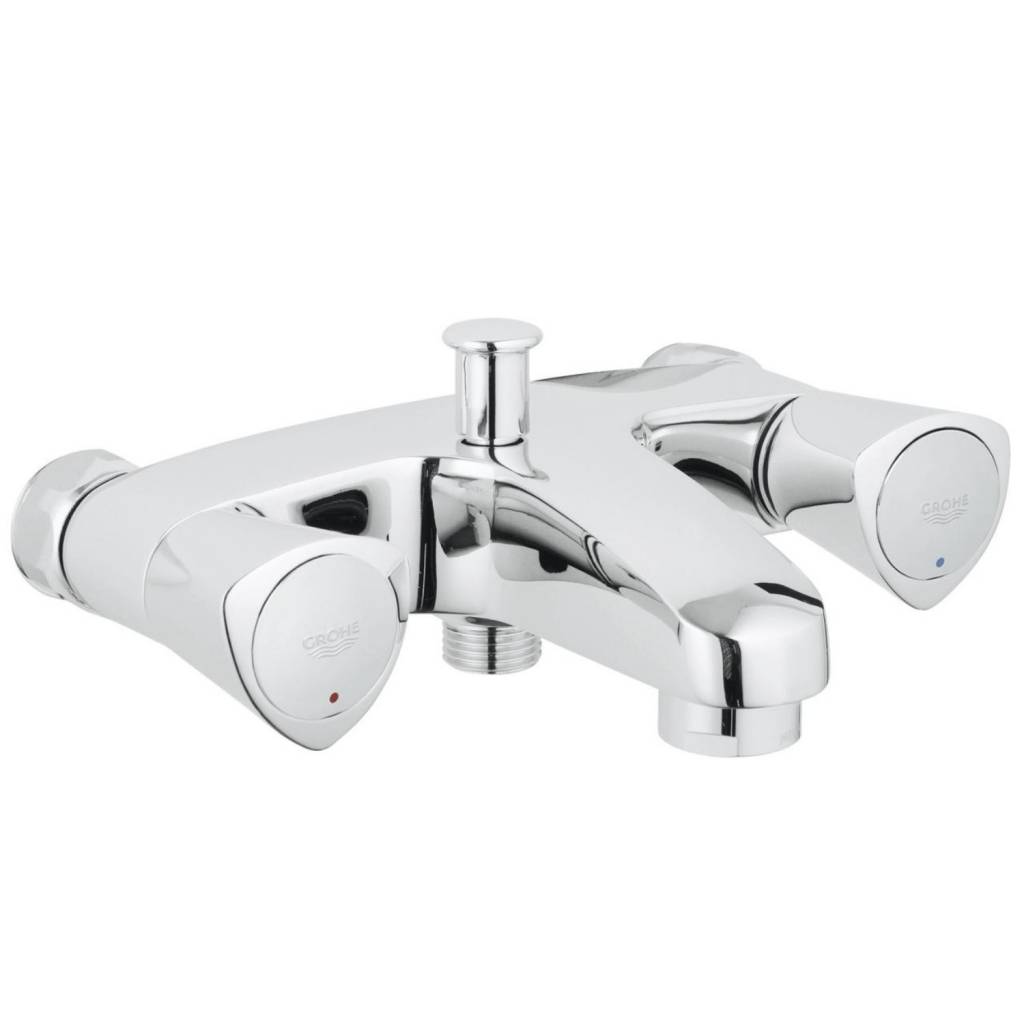 Costa S badkraan met omstel van Grohe. Deze badkraan beschikt over twee metalen grepen, een Grohe Carbodur keramisch bovendeel en een mousseur. Zonder koppelingen.