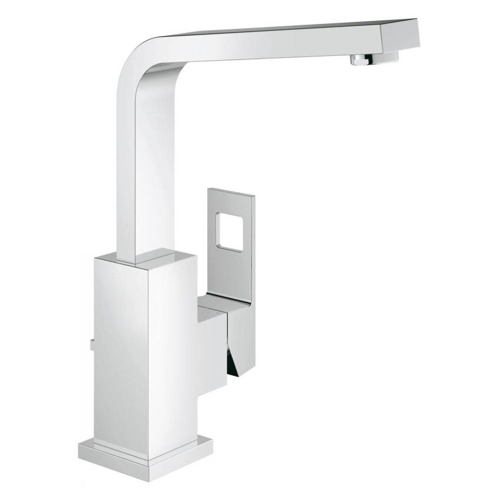 Met z’n markante vormgeving valt deze kraan wel op in je badkamer. Maar het is niet alleen het design, ook zijn functionele capaciteiten zijn een uitkomst. Zo is de hoge en 90° draaibare uitloop ideaal voor het wassen van je haren bij de wastafel. GROHE SilkMove is de techniek die er voor zorgt dat je de hendel voor het watervolume en de tempratuur soepel kunt bedienen. En zonder water te verspillen. Want de GROHE EcoJoy techniek houdt de doorstroom van het water op maximaal 5,7L per minuut. Van kalkaanslag zal je ook weinig merken. De kraanuitloop is voorzien van SpeedClean. Kleine siliconen lamellen die kalk geen kans geven zich te hechten. Even met je vingertop langs de kraanuitloop en weg is de kalk. Deze eenhendelkraan is verder voorzien van de chromen beschermlaag GROHE StarLight die er jarenlang als nieuw uit blijft zien.