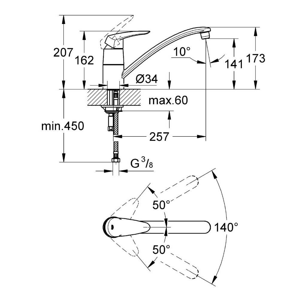 Deze keukenkraan uit de GROHE Eurodisc serie is een verstandige keus voor Uw keuken. De kraan is mooi om te zien en is voorzien van de chromen GROHE StarLight beschermlaag die een mooie glans heeft. De slanke uitloop is tot 140° draaibaar waarmee je werkveld wordt vergroot en je meer flexibiliteit in de keuken hebt. Het watervolume en de temperatuur regel je soepel en precies dankzij de GROHE SilkMove technologie.