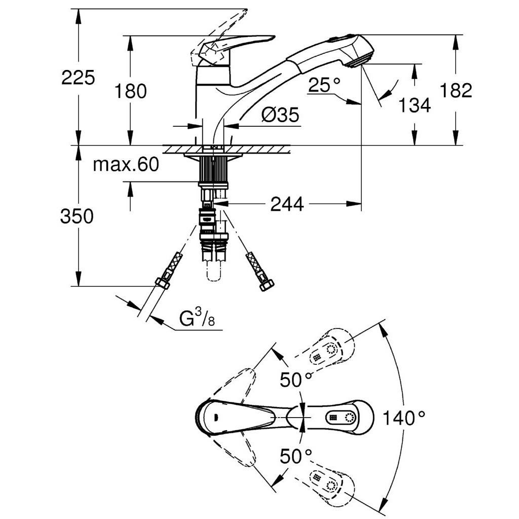 Als je na het eten de opgestapelde afwas in de keuken ziet staan ben je blij dat je gekozen hebt voor een keukenkraan met uittrekbare handdouche. In een handomdraai is alles snel schoongespoeld en is ook elke hoek van de gootsteen makkelijk te bereiken. Ook de draaibare uitloop met een draaihoek van 140° vergroot je werkveld waardoor je flexibeler bent in het gebruik van de kraan. Dankzij GROHE SilkMove is de kraan soepel en precies te bedienen. Hoe praktisch de kraan is wordt al bewezen door het snel montagesysteem bij de installatie. En ook het onderhoud wordt je makkelijk gemaakt. SpeedClean is een toepassing in de douchekop waardoor kalk geen kans heeft en de chromen GROHE StarLight beschermlaag is makkelijk met een zachte doek schoon te maken voor een jarenlange glans.