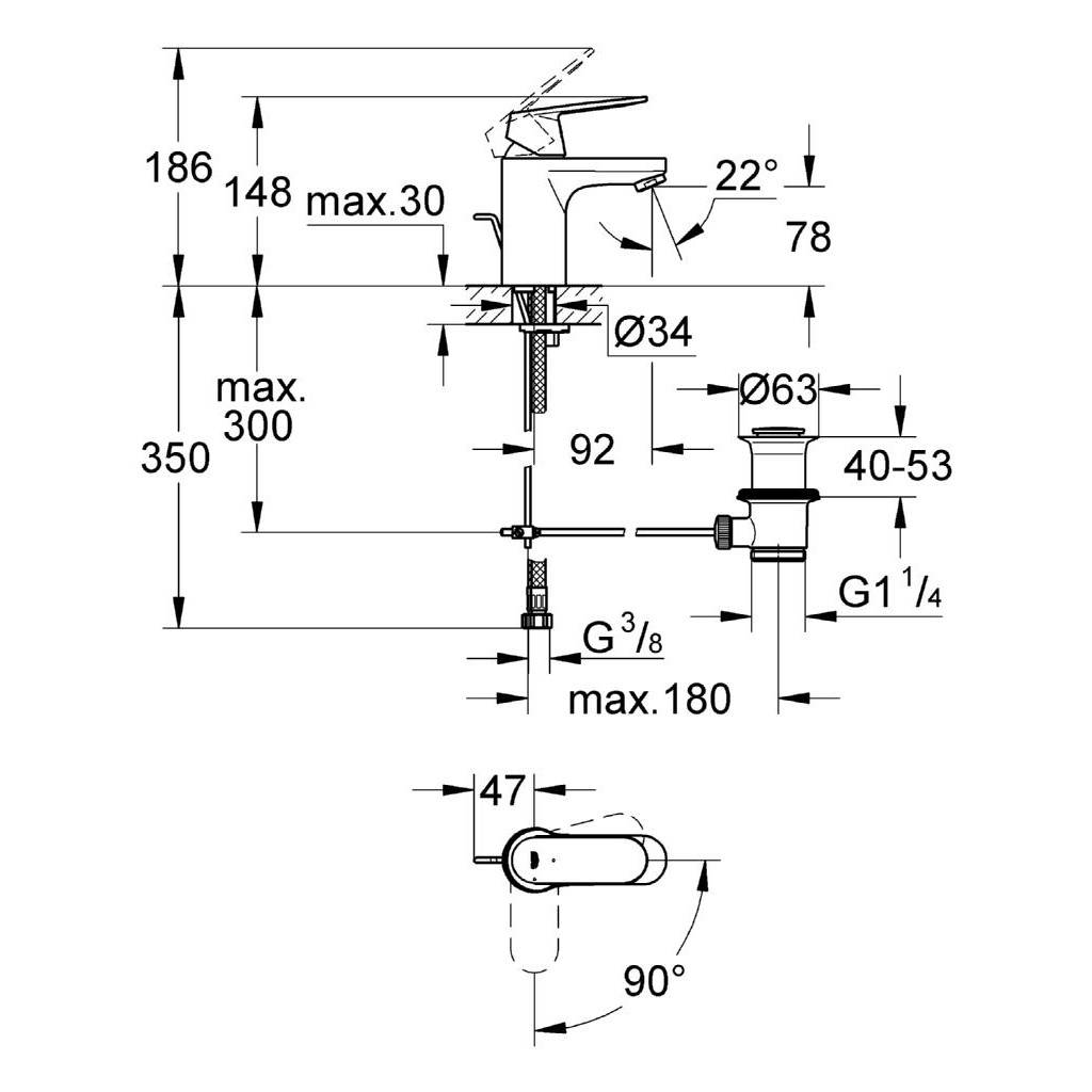 Grohe Eurosmart Cosmopolitan wastafelkraan met waste chroom