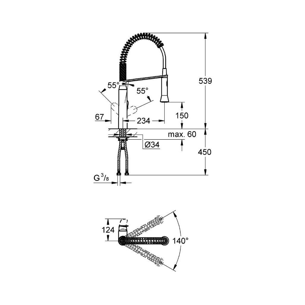 Met deze keukenkraan uit de GROHE K7 serie werk je als een pro in je eigen keuken. Speciaal ontworpen om jou te voorzien van professionele eigenschappen zoals een uittrekbare handdouche met twee straalstanden die je 360° rond kan bewegen. De kraan zelf heeft een draaibereik van 140°. Je gootsteen schoonmaken was zelden zo gemakkelijk. Deze functionele mengkraan heeft een medium hoogte waarmee je met gemak ook hoge pannen kunt vullen. Dankzij het snel montagesysteem monteer je de kraan zelf in een handomdraai. En dankzij de chromen GROHE StarLight beschermlaag is de kraan lekker makkelijk in het onderhoud en is zijn glans jarenlang gegarandeerd.