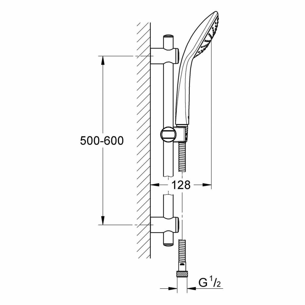 De GROHE Vitalis doucheset Joy Mono bestaat uit een Vitalis handdouche Joy Mono, Glijstang Vitalis Universal 600 mm en Vitalioflex doucheslang Trend 1750 mm. De glijstang kan eenvoudig worden geplaatst op bestaande boorgaten. De Vitalis Joy handdouche Mono heeft een diameter van 110 mm. De handdouche is voorzien van GROHE Rain straal waarbij fijne regenstraaltjes het effect geven van een zomerse regenbui op je lichaam. Daarnaast zorgt GROHE DreamSpray® technologie voor een perfecte verdeling van het water. De handdouche is waterbesparend met een waterverbruik van maximaal 9,4 liter per minuut.