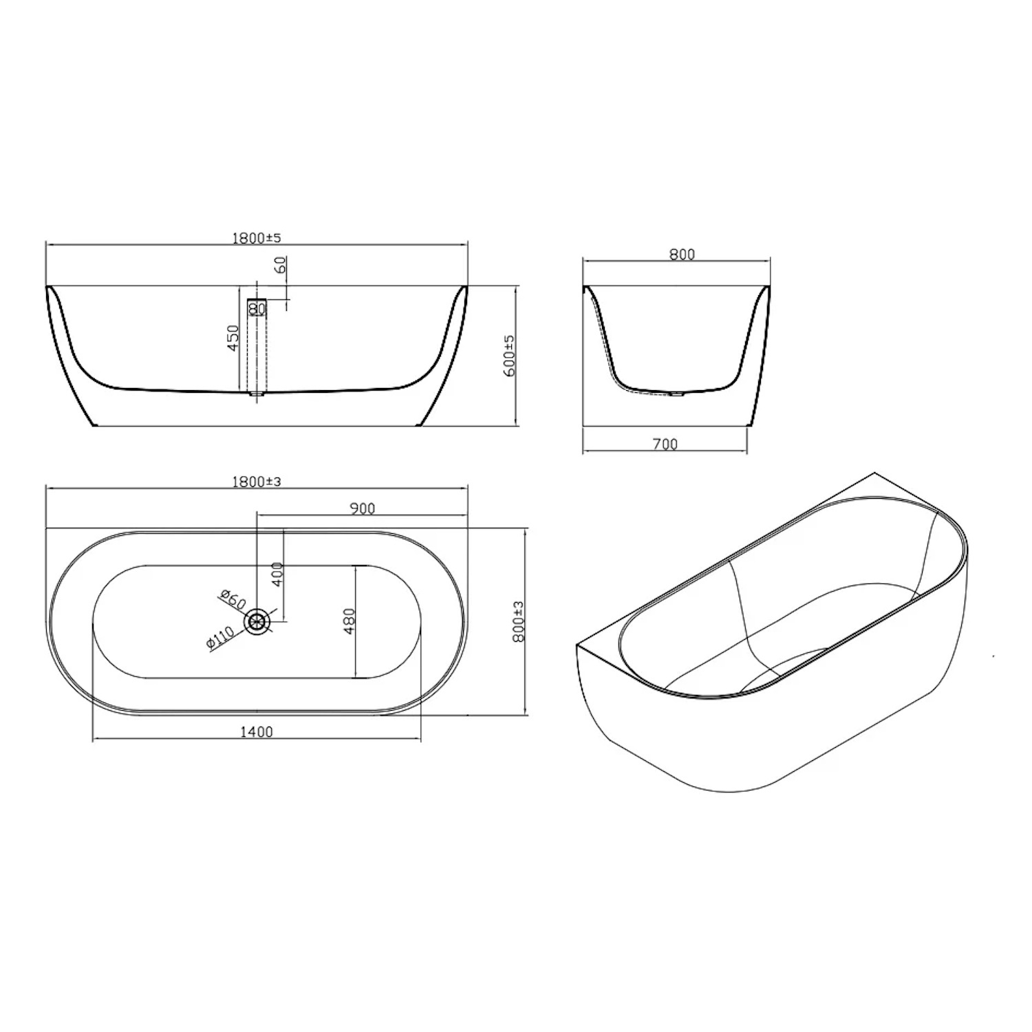 Het bad heeft een lengte van 180 cm, een hoogte van 80 cm en een breedte van 60 cm. Het Sanilux bad wordt geleverd met een aflsuitbare plug in de kleur wit.