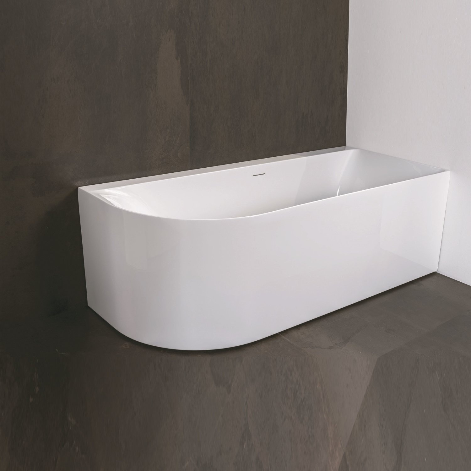 Op zoek naar een luxe, vrijstaand ligbad? Kies dan voor de 'Primo' van het populaire merk Luca Sanitair! Het vrijstaande ligbad is gemaakt van acryl en is afgewerkt in een glanzend witte kleur en komt uitstekend tot recht in de moderne badkamer. Het bad wordt standaard geleverd met een flexibele afvoerset die bestaat uit een chromen clickplug en met een sifon. Het sifon is uitgerust met een flex afvoerpijp met een doorsnede van 40 mm. Het sifon steekt niet onder het bad uit. Het half vrijstaand bad is links afgerond.