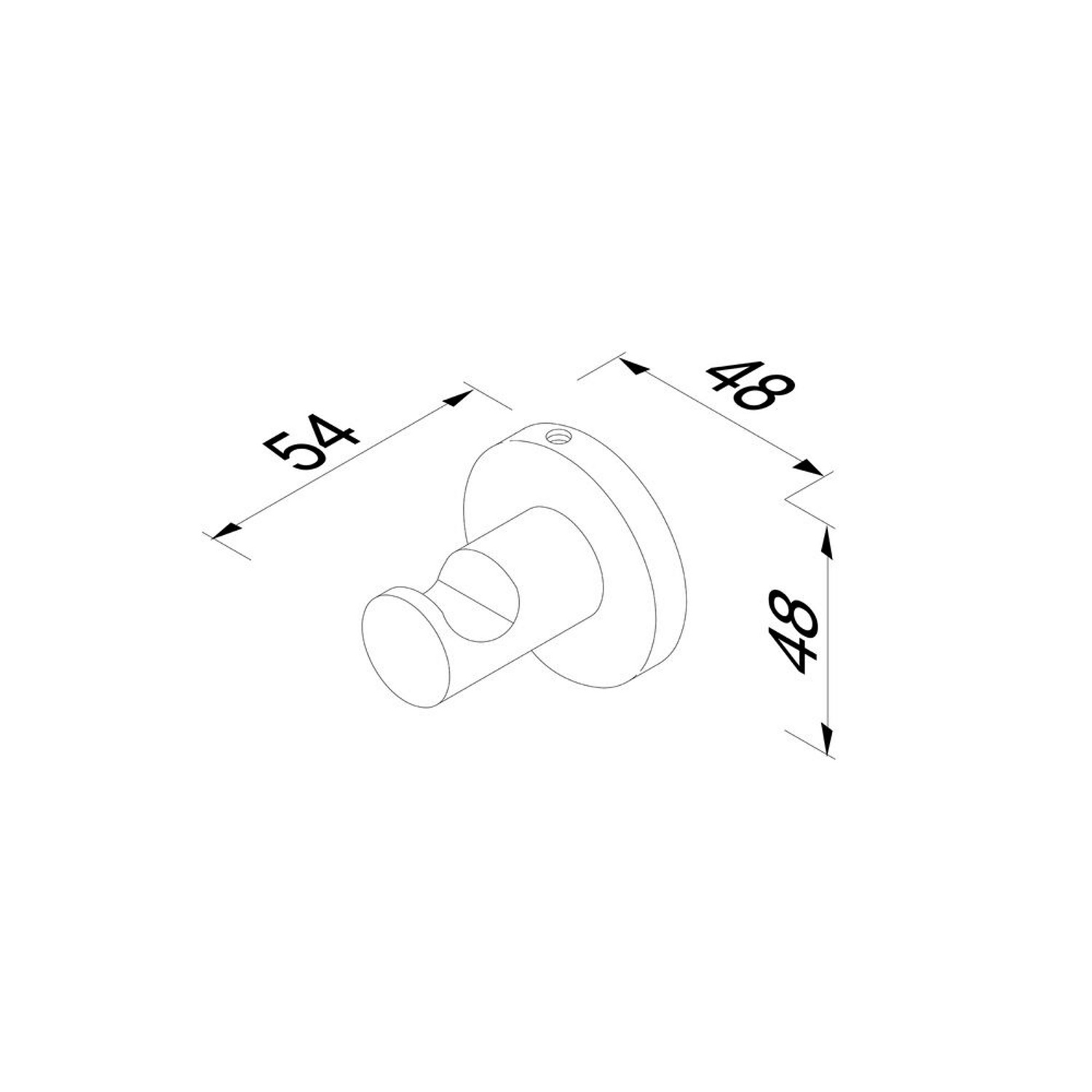 De handdoekhaak heeft een breedte van 4,8 cm en een diepte van 5,4 cm. Hij is van messing, afgewerkt in glanzend chroom.