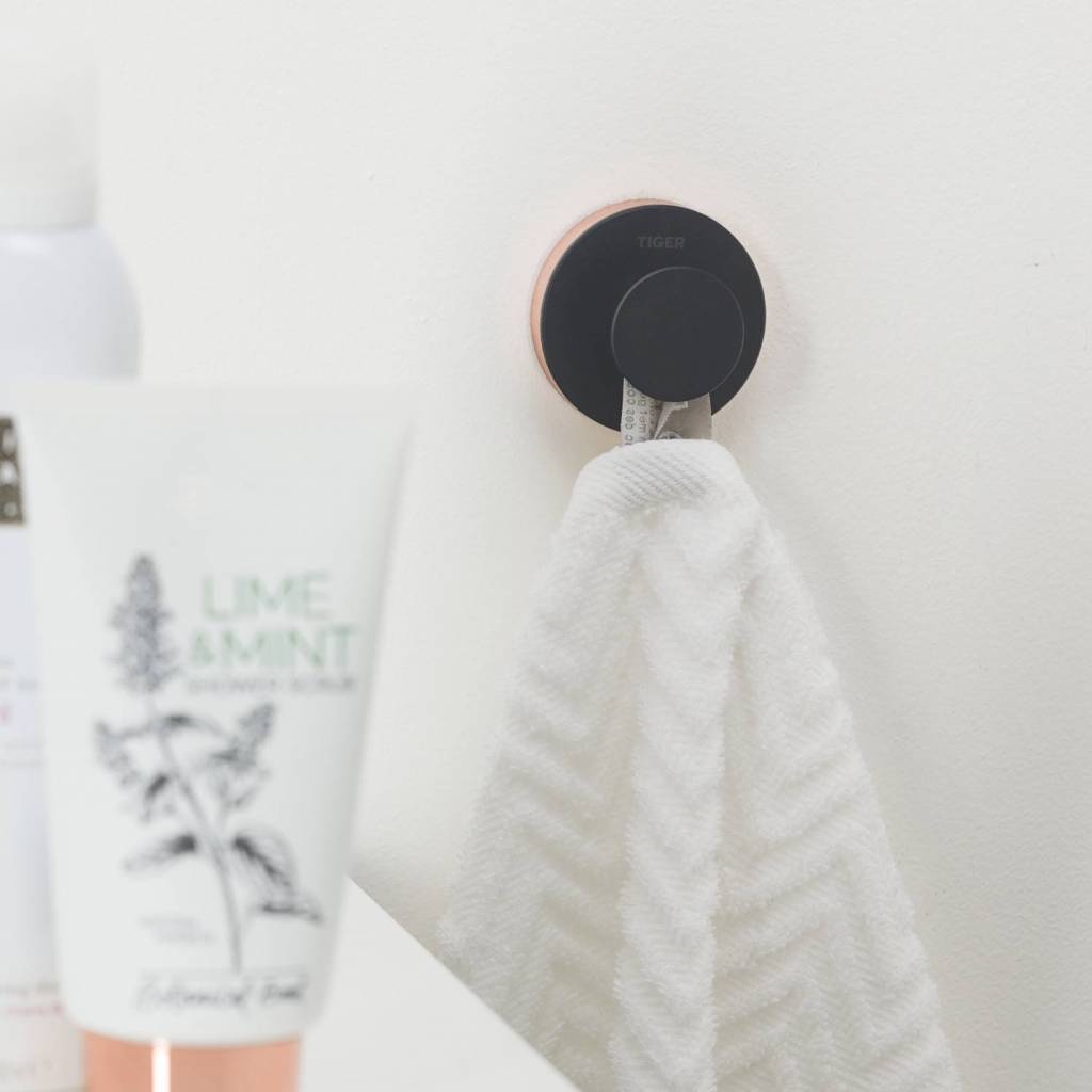 De haak is tevens geschikt voor montage met TigerFix type 1, waarmee accessoires snel en eenvoudig op een gladde, harde ondergrond te bevestigen zijn door middel van een gepatenteerd lijmsysteem. Boren is niet noodzakelijk en de accessoires zijn eenvoudig te verwijderen zonder dat er resten op de ondergrond achterblijven. TigerFix is los verkrijgbaar.