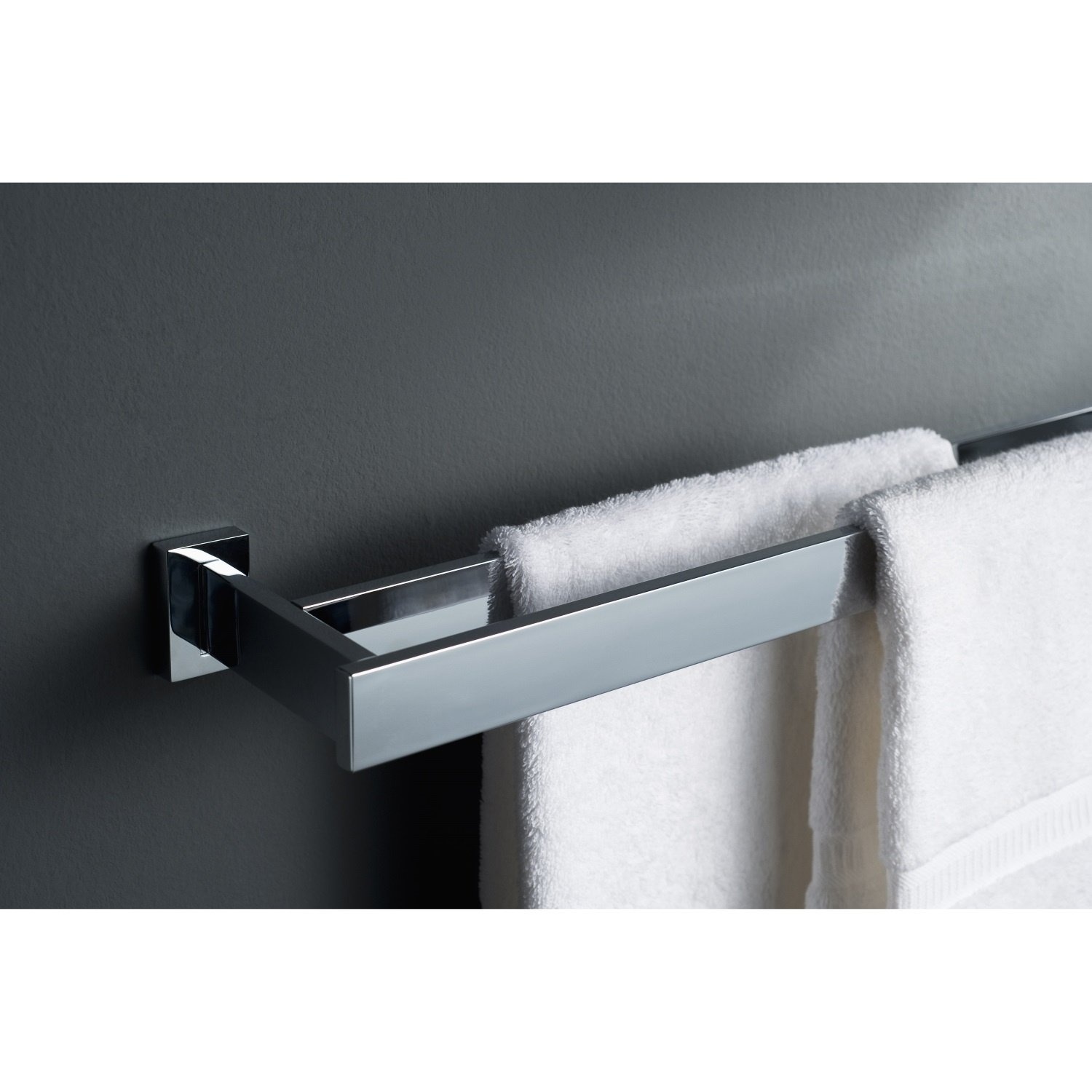 Helemaal in stijl met de rest van de hoekige Edge-serie: deze dubbele handdoekhouder van 60 cm breed. Zo houdt u de badkamer lekker opgeruimd.