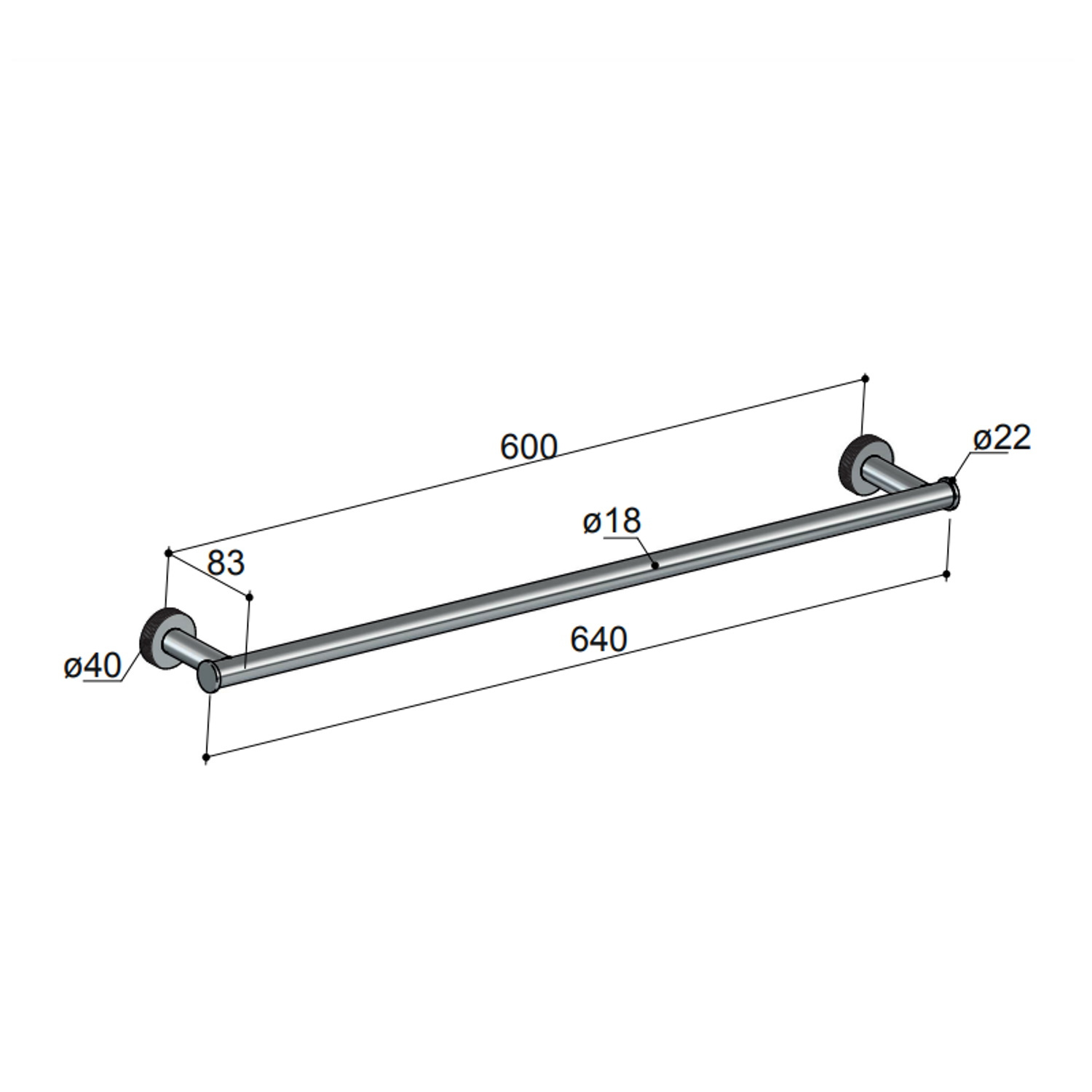 De handdoekhouder heeft een lengte van 60 cm en daarmee genoeg ruimte handdoeken. Het is in totaal vier cm hoog. Dit komt door de bevestigingsplaat die een diameter heeft van 4 cm. De totale diepte is 8.3 cm.