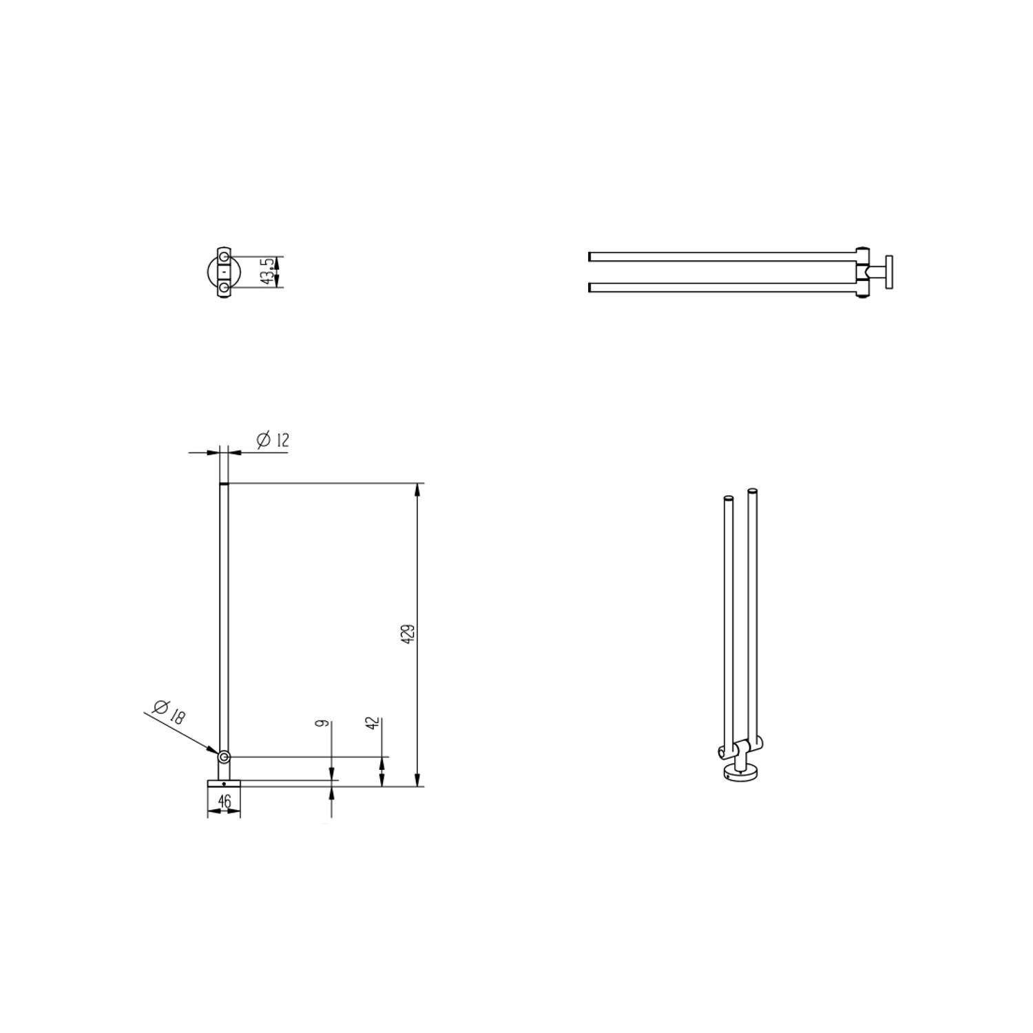 De London handdoekhouder van het merk Schutte is gemaakt van roestvrij staal en heeft een chromen afwerking. De handdoekhouder heeft twee stangen van 43cm lang waarop u twee handdoeken kunt hangen. De twee stangen hebben een diameter van 12 cm.