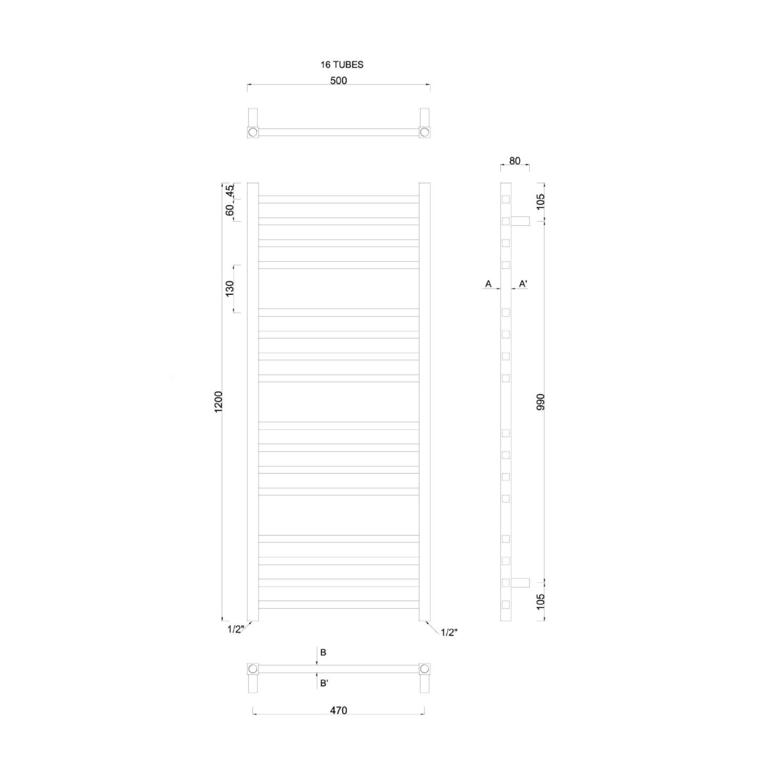 Deze mooie designradiator van serie Metro kan door zijn eenvoudige design geplaatst worden in iedere gewenste ruimte. Met het ingetogen ontwerp is de handdoekradiator elegant en stijlvol. De breedte van deze radiator is 50 cm, de hoogte 120 cm en het vermogen bedraagt 347 Watt. U kunt deze radiator gebruiken bij een combinatie van centrale en elektrische verwarming, elektrische verwarming of centrale verwarming.
