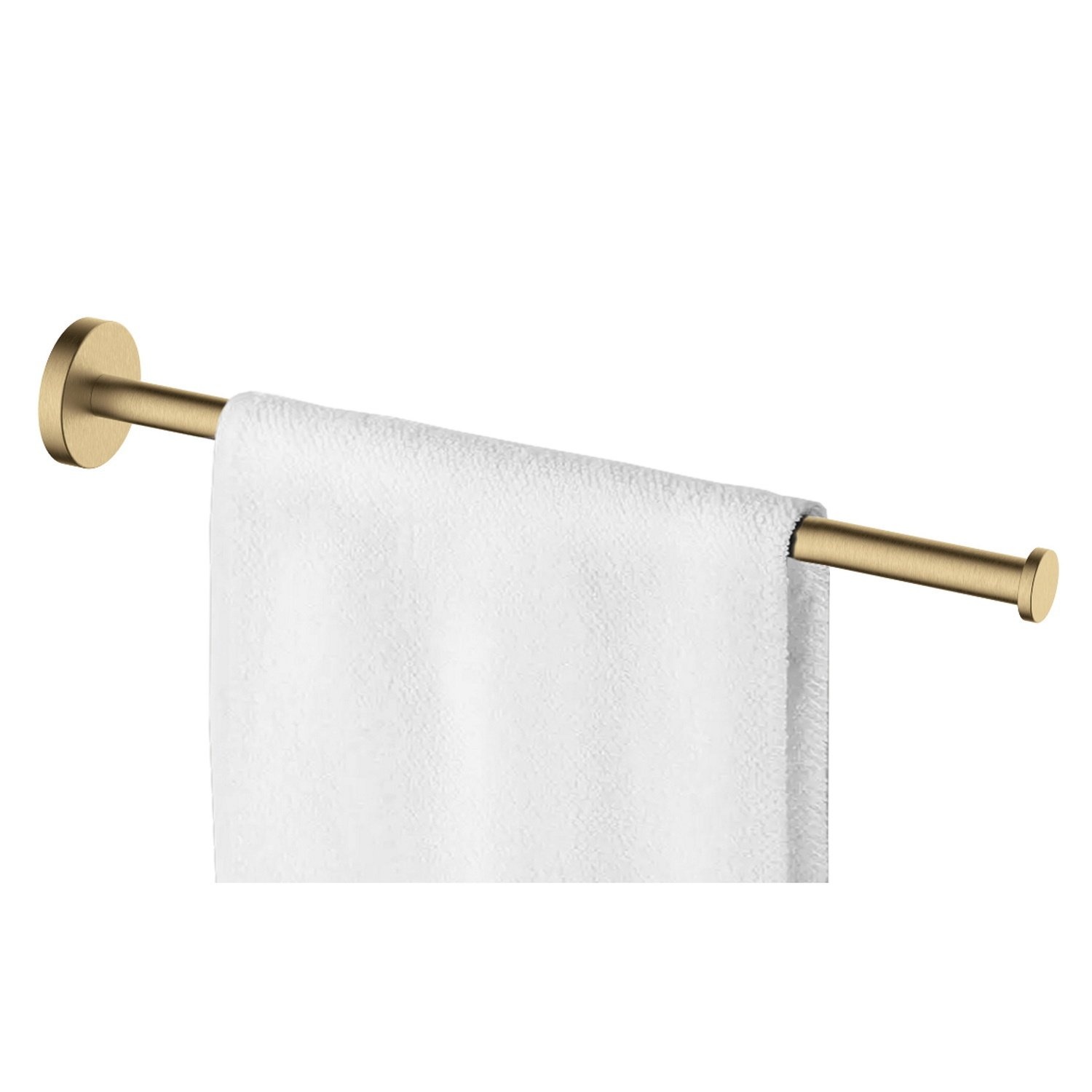 Met dit eigentijdse Wiesbaden Alonzo handdoekrek in de kleur messing heb je je handdoek altijd binnen handbereik. Het rek heeft een vaste arm waardoor je handdoek ook nog eens sneller droogt. Bovendien is het rek gemaakt van hoogwaardige materialen en met de meegeleverde schroeven en Fischer pluggen bevestig je het rek eenvoudig aan de wand. Combineer het handdoekrek met andere accessoires uit de Alonzo serie en maak één geheel van je badkamer of toilet.