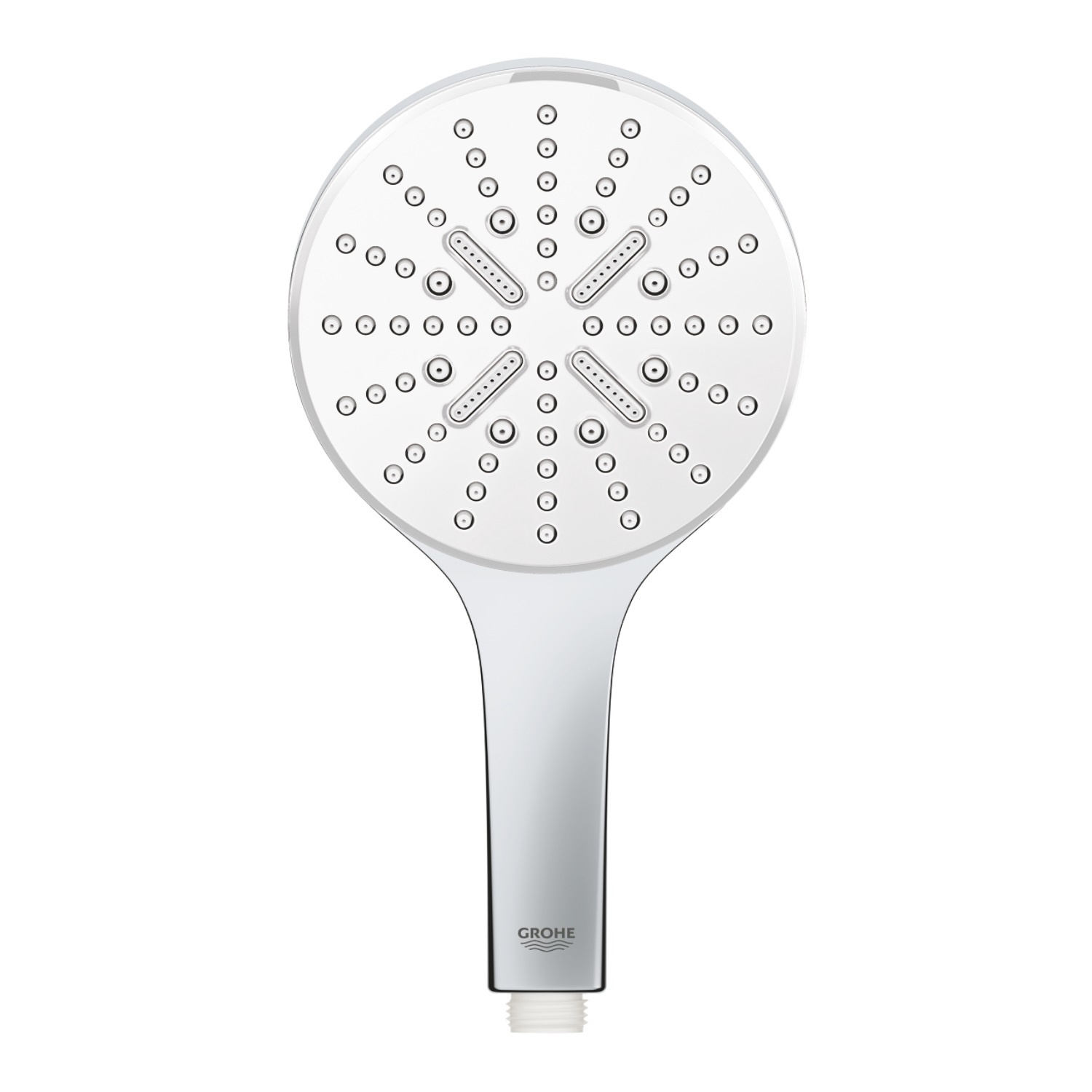 Zodra u het water uitzet zorgt Grohe DripStop ervoor dat de Rain Spray en Jet Spray bijna niet zullen nadruppelen. En dankzij Grohe DreamSpray is de stroom uit elk sproeigaatje bij iedere douchestraal die u kiest gelijk voor maximaal gebruiksgenot. En de SpeedClean antikalk sproeigaatjes zijn ook extra gemakkelijk schoon te maken. De sproeiplaat van deze handdouche is wit.