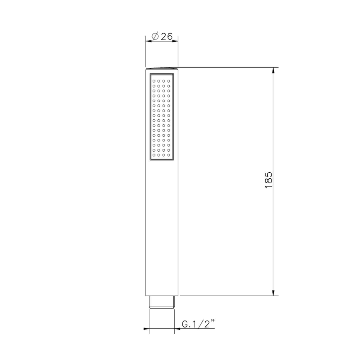 De handdouche heeft de afmeting 18.5x2.6 cm met een 1/2 aansluiting.