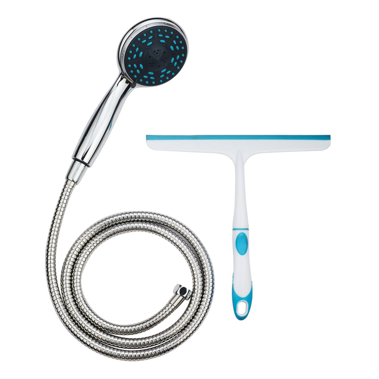 De Napoli handdoucheset van het merk Schutte is inclusief handdouche, een doucheslang van 150 cm met een chromen afwerking en een douchewisser. De handdouche beschikt over vijf straalsoorten en is waterbesparend. Daarnaast bevat de handdouche antikalk nozzles waar kalk zich niet aan kan hechten. De chromen handdouche heeft een diameter van 8.3 cm en is voorzien van een 1/2 aansluiting. De douchewisser is 26 cm lang en 22 cm breed.