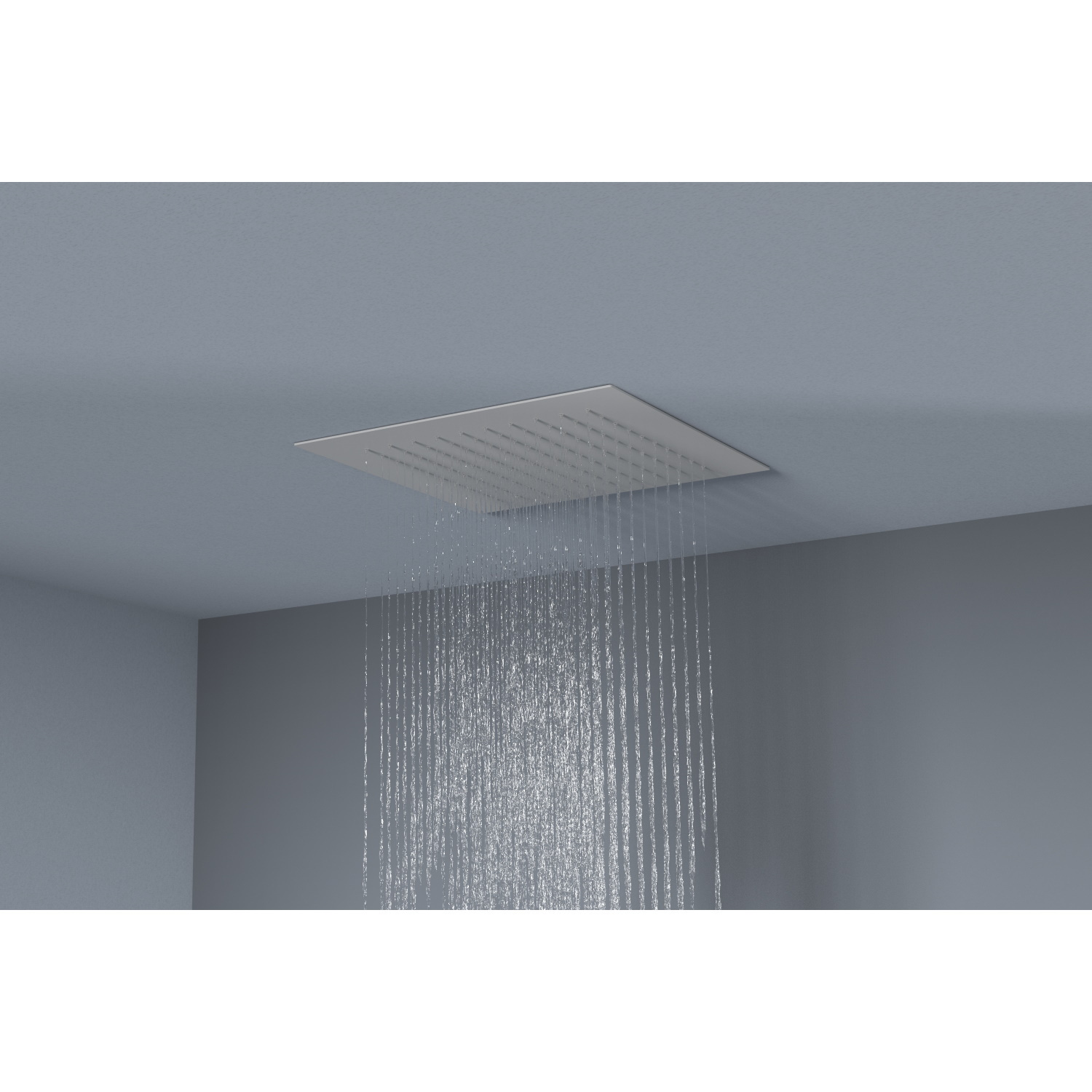 Deze inbouwregendouche is met gemak te installeren in uw natte ruimte zonder dat u bevestigingspunten zichtbaar zal hebben. Door de eenvoudige clips kunt u de hoofddouche met gemak bevestigen aan uw plafond. Met een afmeting van 34x34 cm en zijn mat witte kleur past de hoofddouche perfect in een moderne natte ruimte.