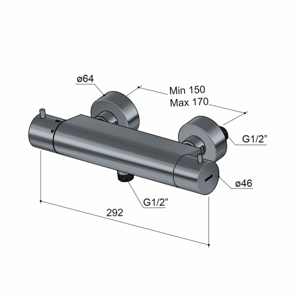 Opbouw douchethermostaat gemaakt van messing en beschikt over keramische schijven waardoor de kraan soepel open en dicht gedraaid kan worden. Dit model is wordt geleverd exclusief doucheslang.