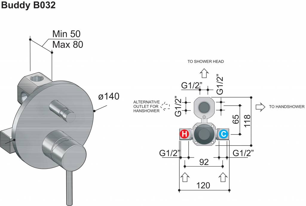 Hotbath Buddy inbouw douche/badmengkraan met automatische omstelinrichting 032