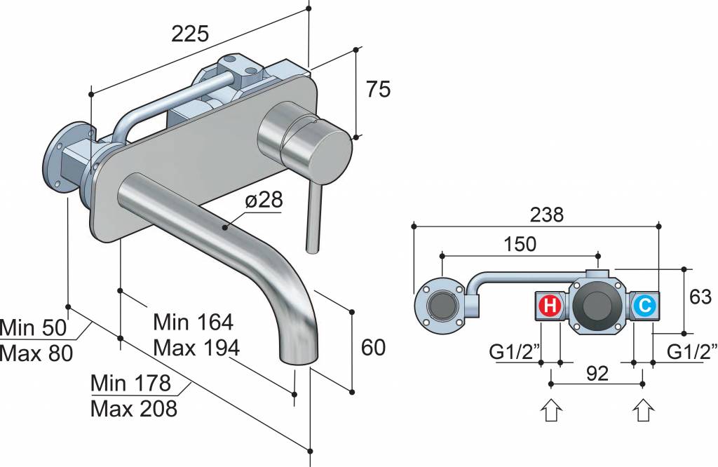 De uitloop van de kraan heeft een lengte van 16.4 cm. De wastafelkraan dient aan de wand bevestigd te worden en wordt exclusief waste geleverd. De kraan heeft een keramisch binnenwerk, dit houden de knoppen jarenlang soepel in zijn beweging om water door te laten en de kraan goed te sluiten.