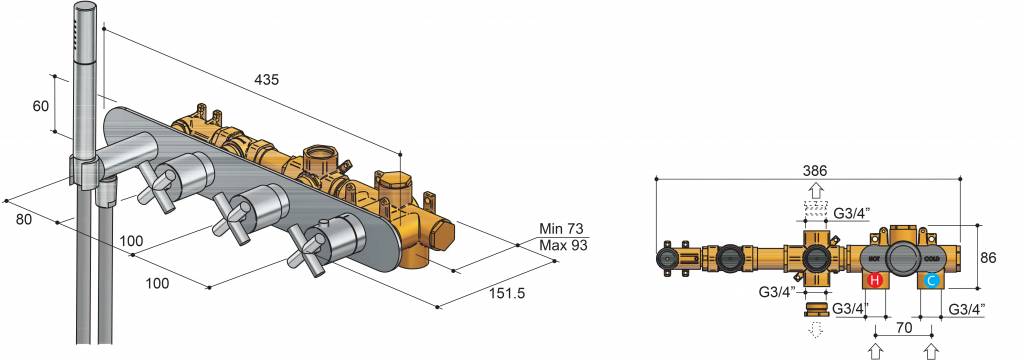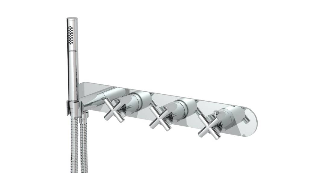 Mooie inbouw bad/douche thermostaat vervaardigd uit messing en met een chroom of geborsteld nikkel afwerking. U kunt deze inbouwkraan voor zowel bad als douche gebruiken.
