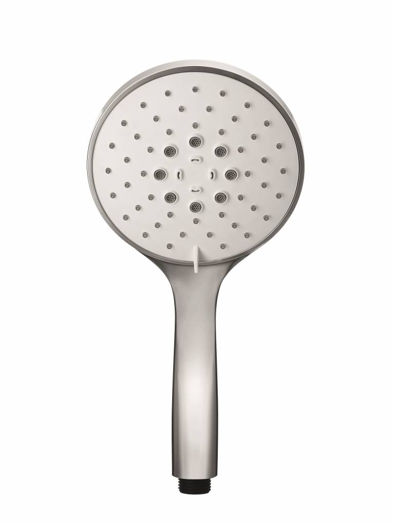 Handdouche Mate M376 vervaardigd uit ABS kunststof, met keuze uit een chroom of geborsteld nikkel uitvoering. Deze handdouche heeft 3 verschillende standen en een waterbesparend EcoAir System.