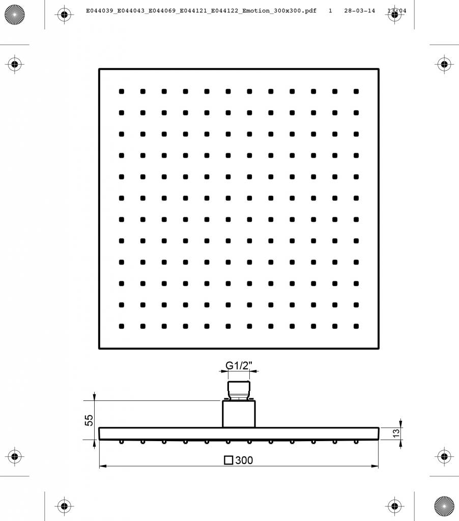 Vierkante hoofddouche 30x30 cm opbouw model. Vervaardigd uit messing en verkrijgbaar in chroom of geborsteld nikkel. Beschikt over het EcoAir en Shower Power System waarmee u aanzienlijk veel water zult besparen.