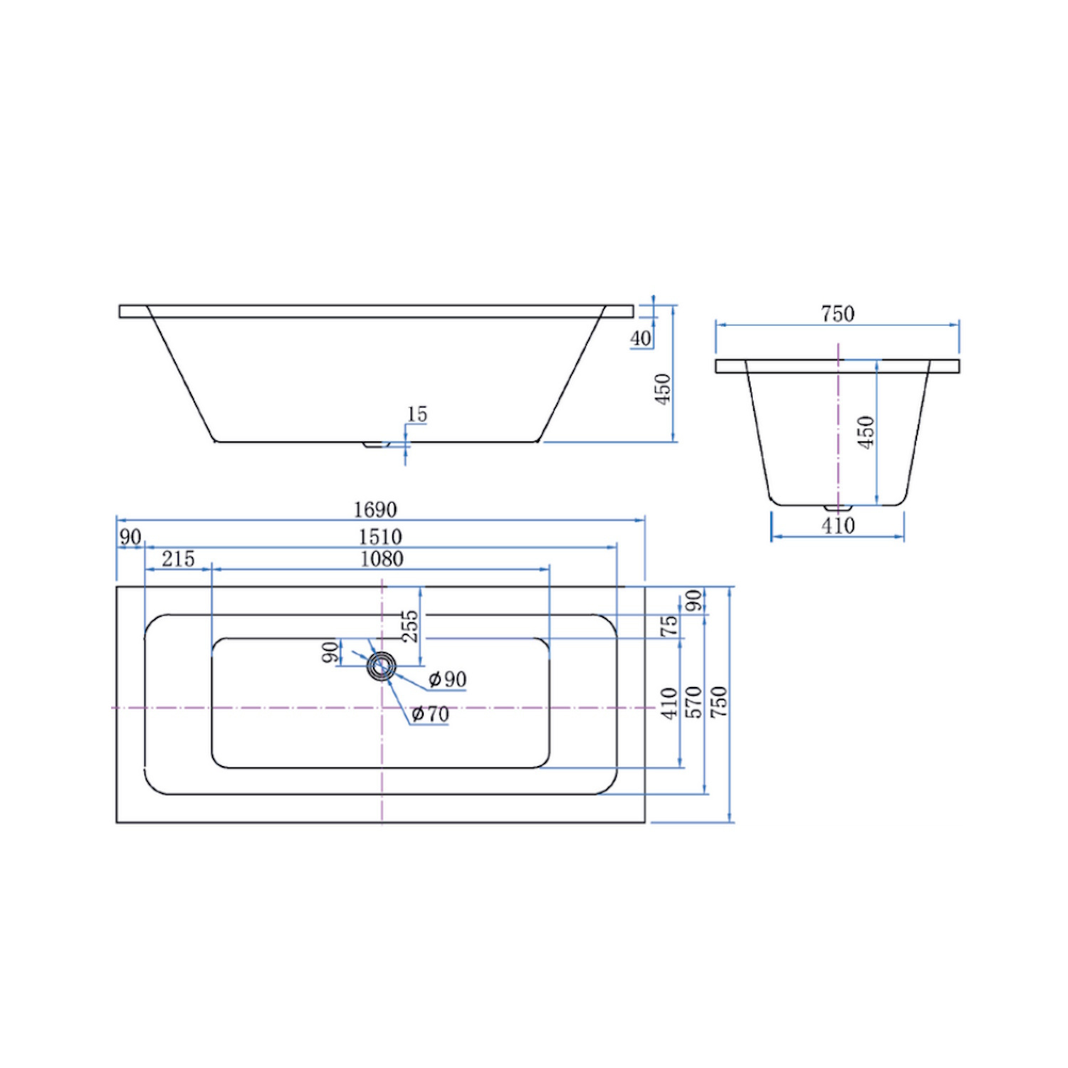 Dit inbouw bad van Luca Sanitair is gemaakt van acryl. Het bad heeft een lengte van maar liefst 169 cm en is 74 cm breed. Het bevat daarmee een inhoud van 250 liter. De rechthoekige vorm van het bad geeft voldoende ruimte om comfortabel te liggen. Dankzij de overloop hoeft u niet bang te zijn voor overstromend water, het overtollige water wordt hierdoor namelijk direct afgevoerd.