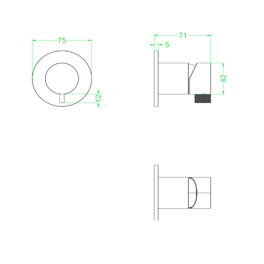 De douchekraan heeft een hoogte van 5,4 cm en een breedte van 7,5. De kraan heeft een diepte van 7,1 cm en is inclusief inbouwdeel.